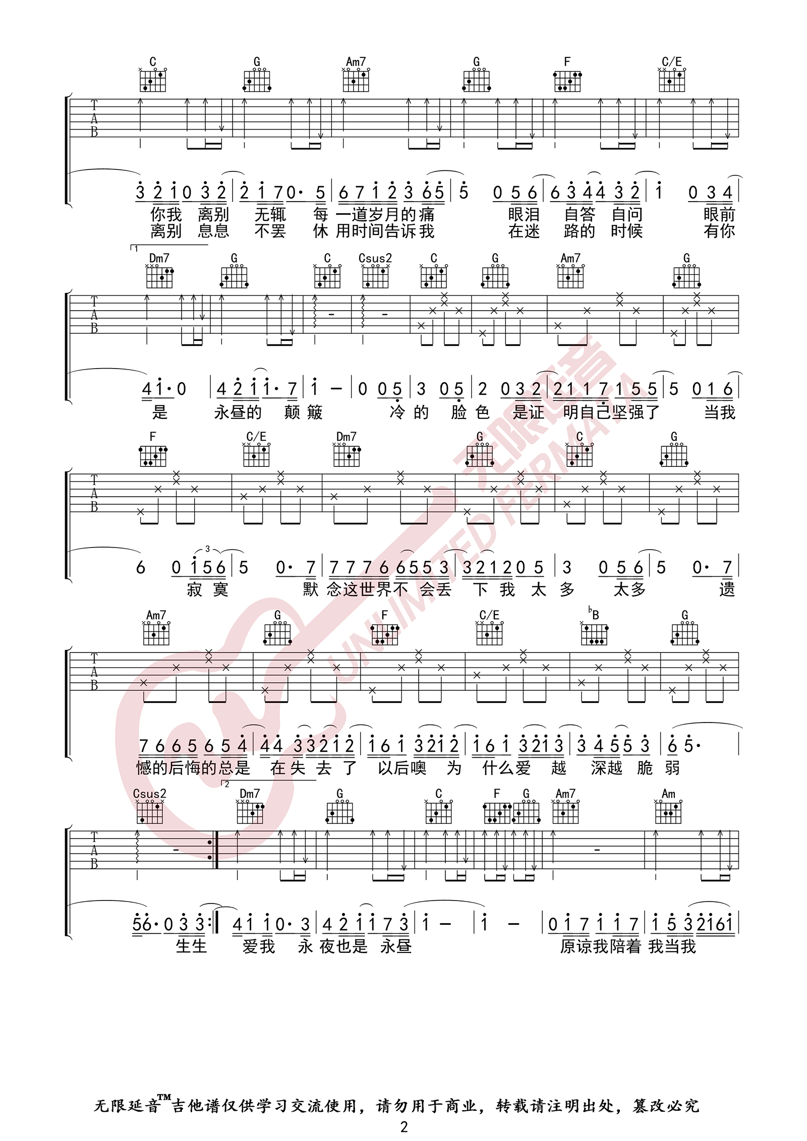 《林俊杰《生生吉他谱》(C调)》内容来自于互联网,不能保证内容的准确性与完整性,仅供学习交流欣赏,请勿用于其它用途,内容版权归原作者及来源网站所有,如有侵犯到您的权益请来信告知,我们将及时删除。