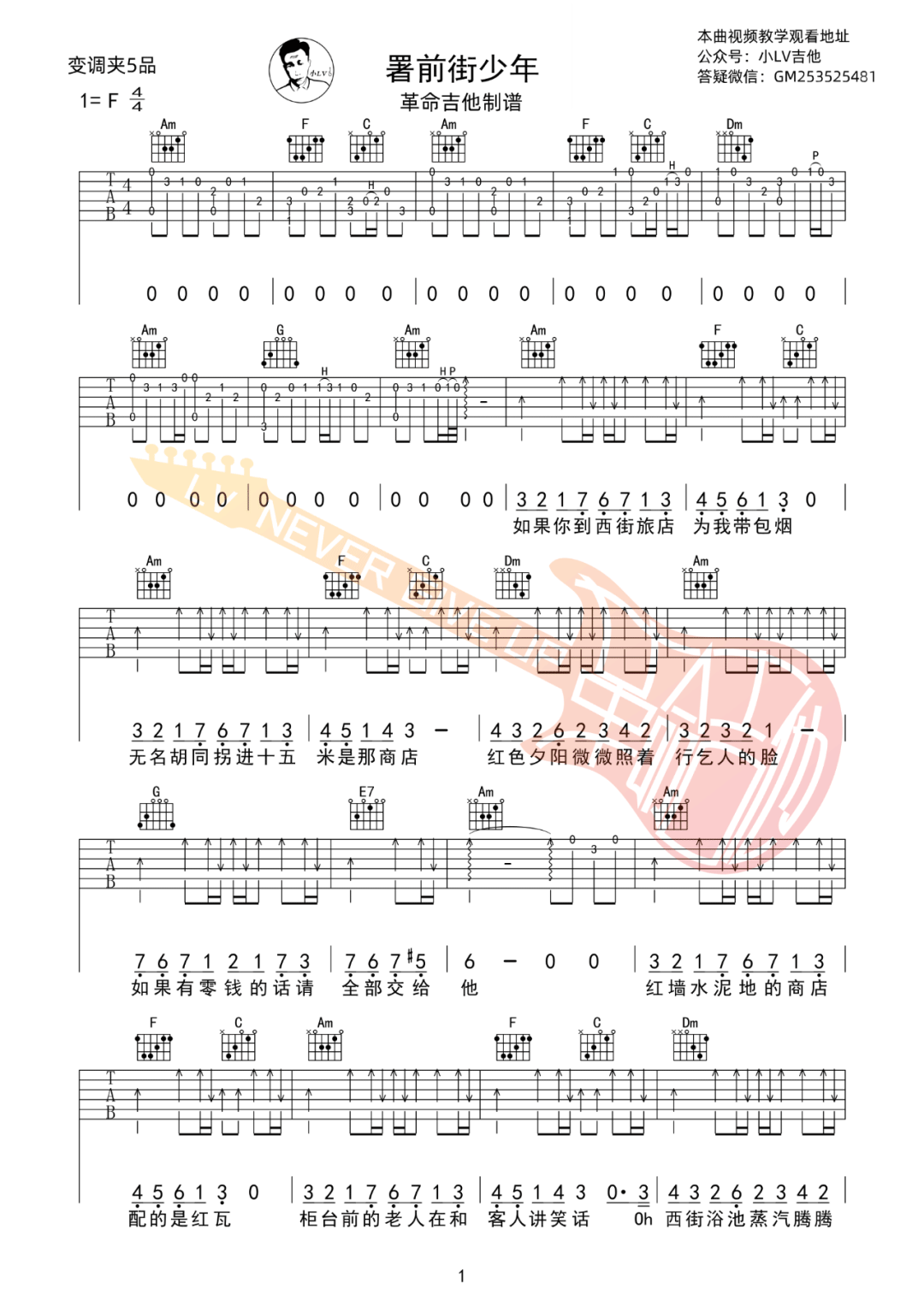 《赵雷《署前街少年吉他谱》(C调)》内容来自于互联网,不能保证内容的准确性与完整性,仅供学习交流欣赏,请勿用于其它用途,内容版权归原作者及来源网站所有,如有侵犯到您的权益请来信告知,我们将及时删除。