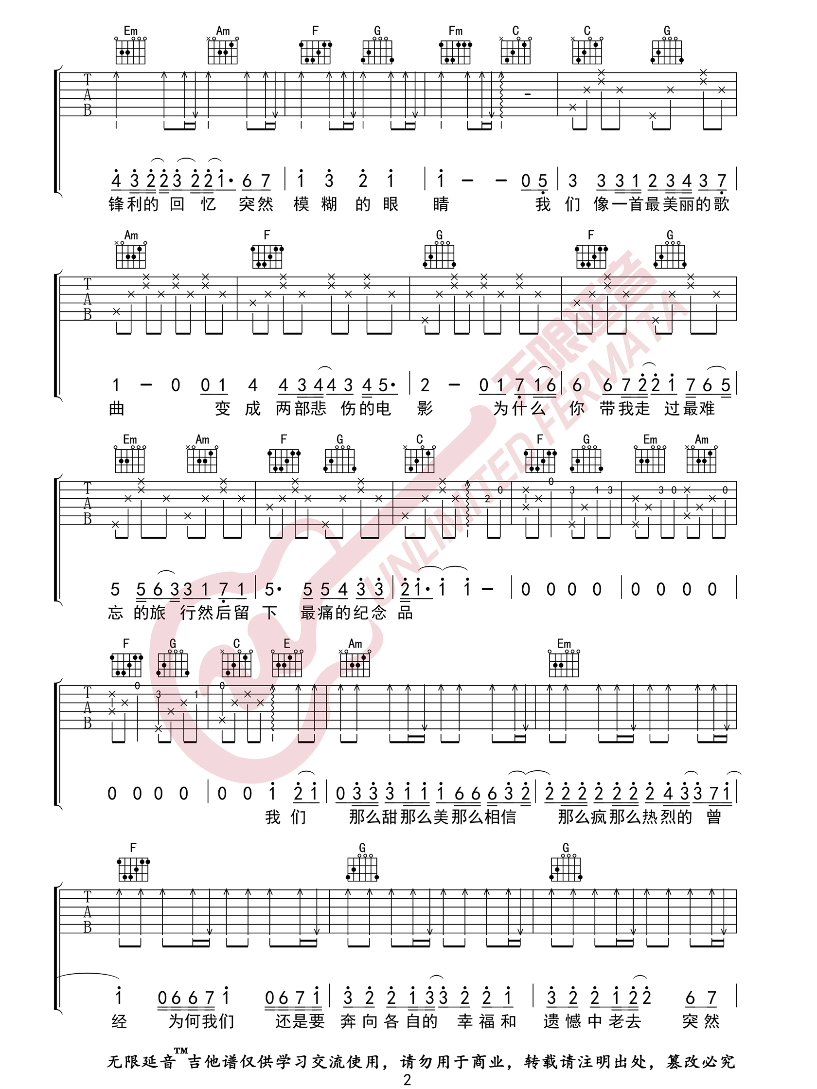 《五月天《突然好想你吉他谱》(C调)》内容来自于互联网,不能保证内容的准确性与完整性,仅供学习交流欣赏,请勿用于其它用途,内容版权归原作者及来源网站所有,如有侵犯到您的权益请来信告知,我们将及时删除。