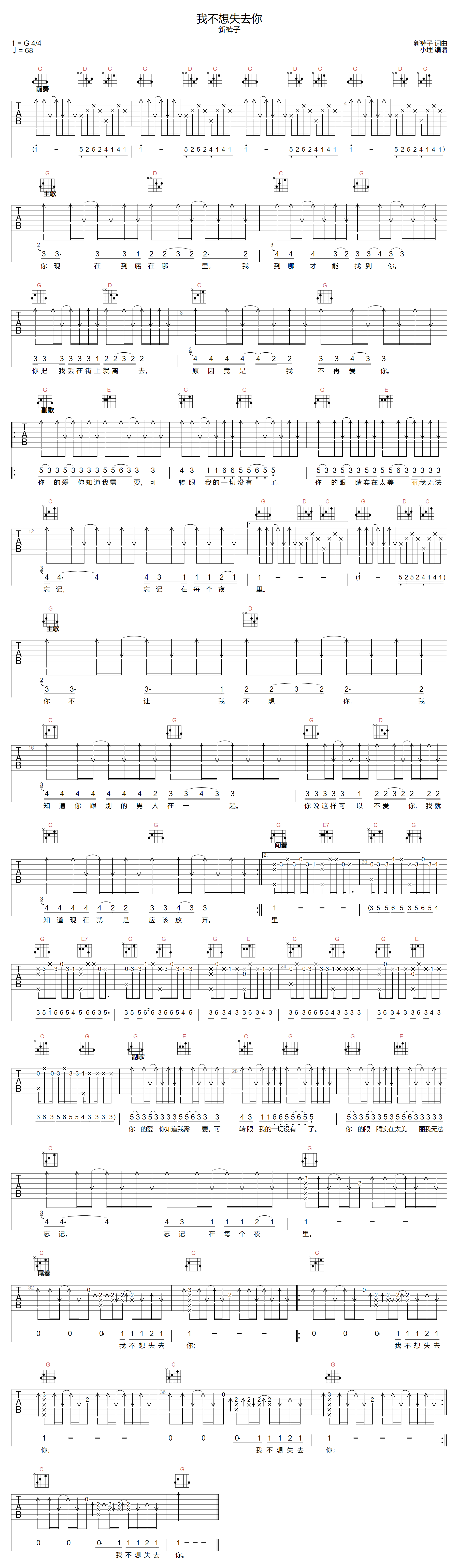 《新裤子乐队《我不想失去你吉他谱》(G调)》内容来自于互联网,不能保证内容的准确性与完整性,仅供学习交流欣赏,请勿用于其它用途,内容版权归原作者及来源网站所有,如有侵犯到您的权益请来信告知,我们将及时删除。