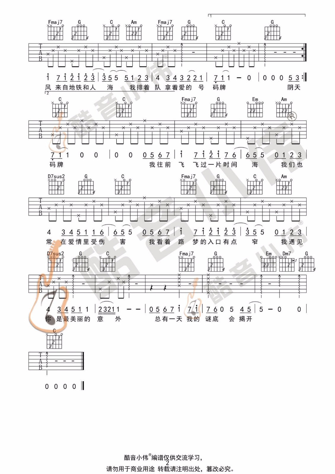 《孙燕姿《遇见吉他谱》(C调)》内容来自于互联网,不能保证内容的准确性与完整性,仅供学习交流欣赏,请勿用于其它用途,内容版权归原作者及来源网站所有,如有侵犯到您的权益请来信告知,我们将及时删除。