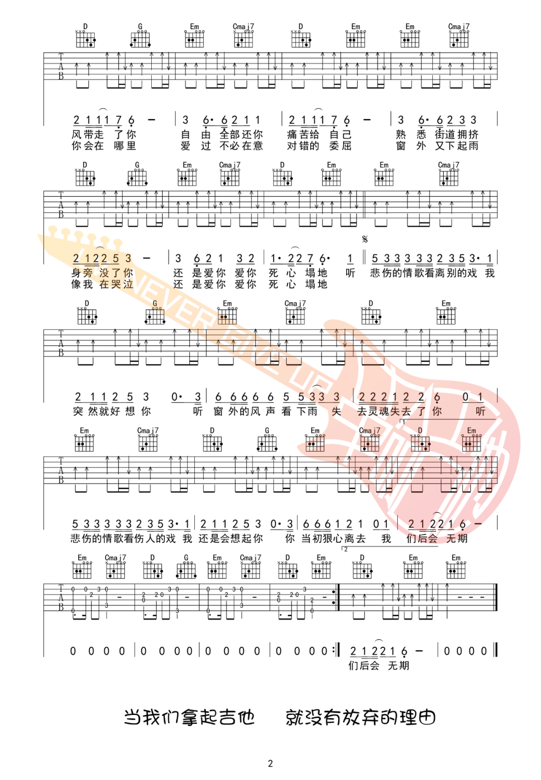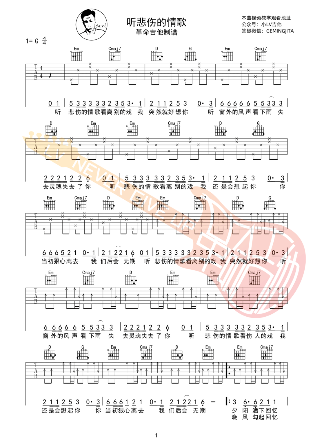 《苏星婕《听悲伤的情歌吉他谱》(C调)》内容来自于互联网,不能保证内容的准确性与完整性,仅供学习交流欣赏,请勿用于其它用途,内容版权归原作者及来源网站所有,如有侵犯到您的权益请来信告知,我们将及时删除。