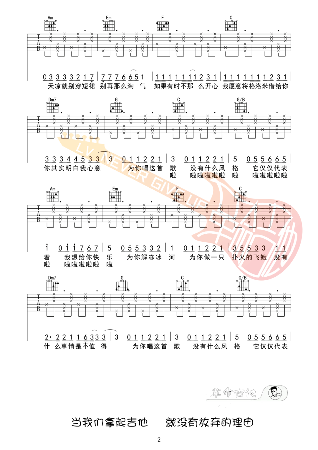 《许嵩《有何不可吉他谱》(D调)》内容来自于互联网,不能保证内容的准确性与完整性,仅供学习交流欣赏,请勿用于其它用途,内容版权归原作者及来源网站所有,如有侵犯到您的权益请来信告知,我们将及时删除。
