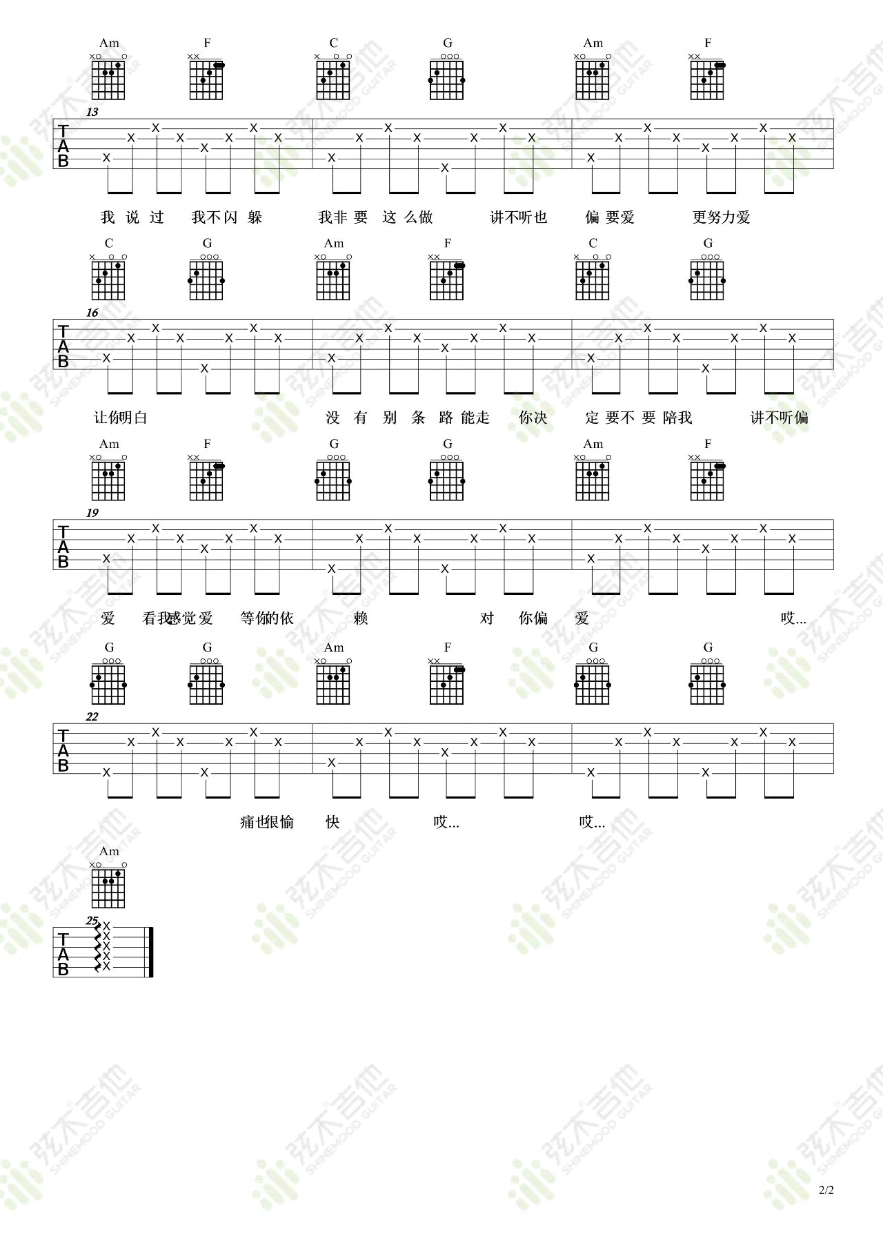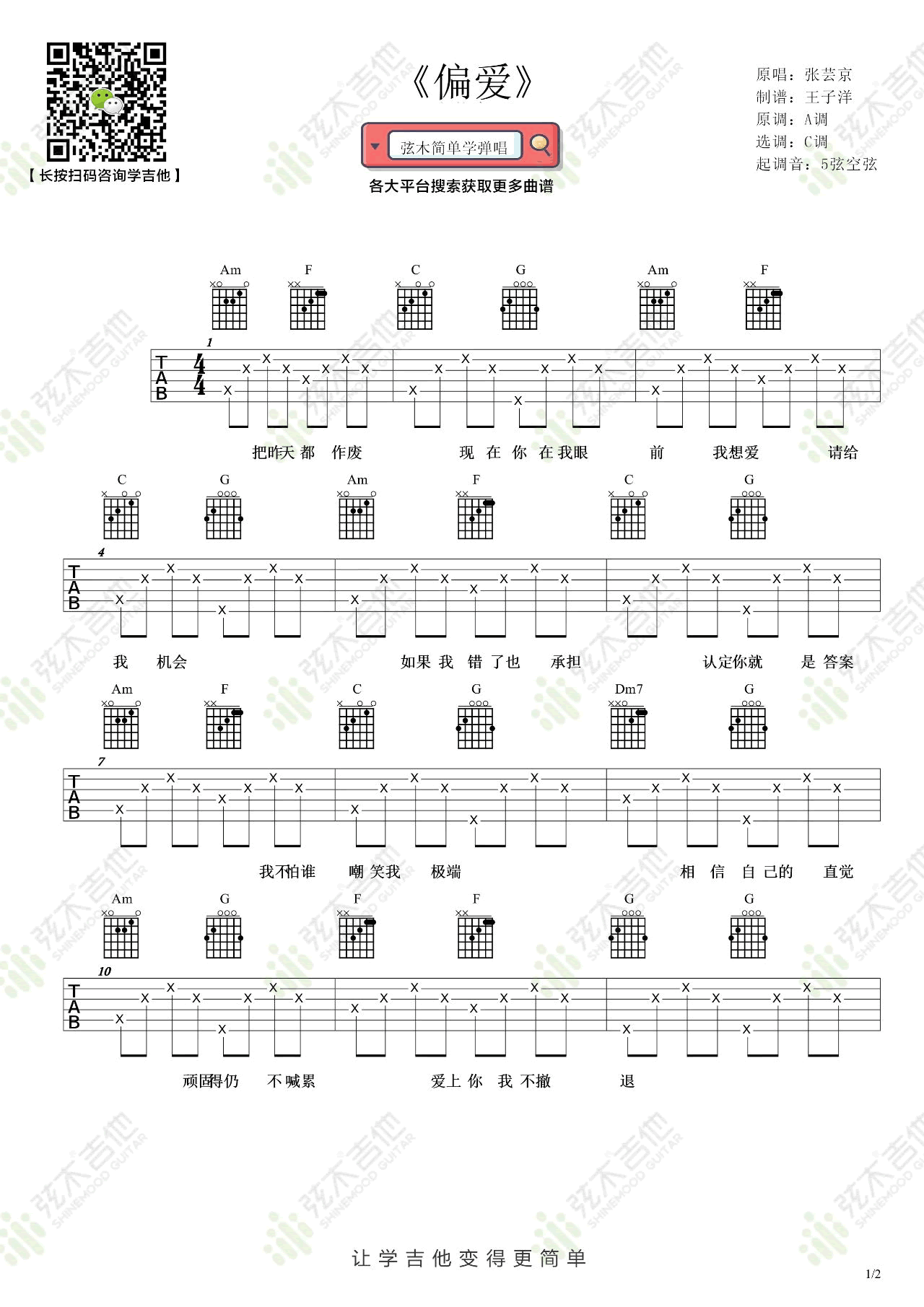 《张芸京《偏爱吉他谱》(C调)》内容来自于互联网,不能保证内容的准确性与完整性,仅供学习交流欣赏,请勿用于其它用途,内容版权归原作者及来源网站所有,如有侵犯到您的权益请来信告知,我们将及时删除。