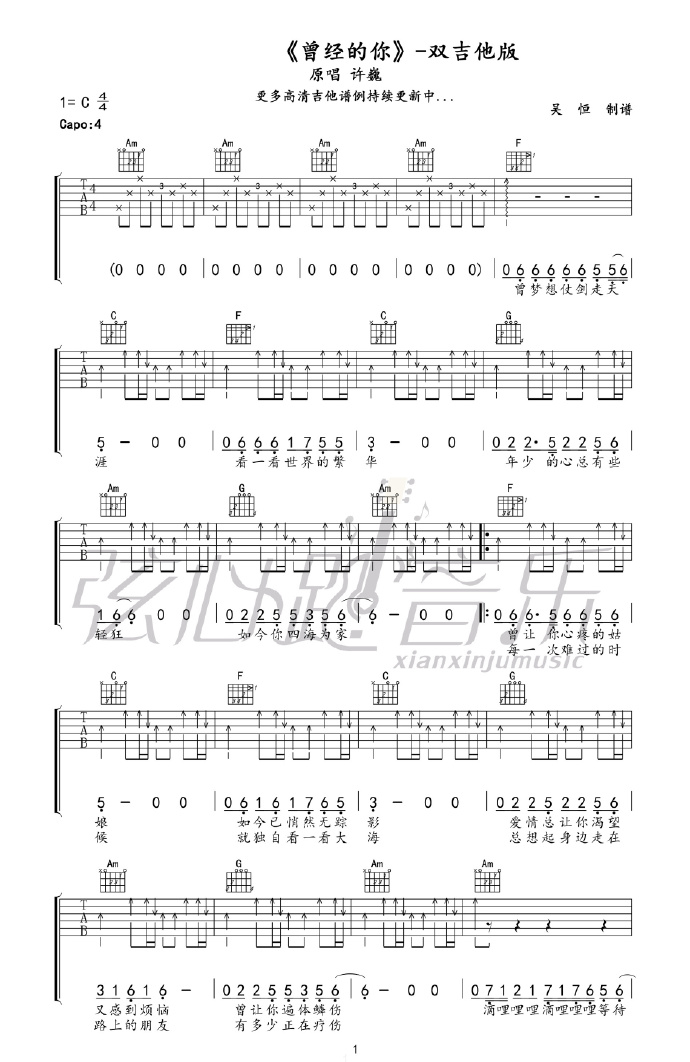 《许巍《曾经的你吉他谱》(C调)》内容来自于互联网,不能保证内容的准确性与完整性,仅供学习交流欣赏,请勿用于其它用途,内容版权归原作者及来源网站所有,如有侵犯到您的权益请来信告知,我们将及时删除。