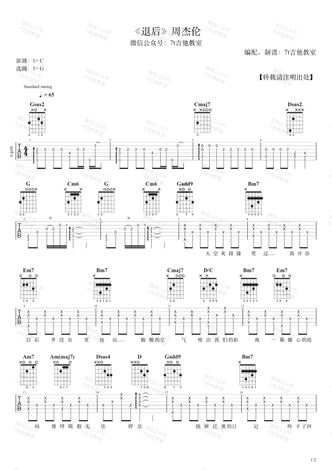 《周杰伦《退后吉他谱》(C调)》内容来自于互联网,不能保证内容的准确性与完整性,仅供学习交流欣赏,请勿用于其它用途,内容版权归原作者及来源网站所有,如有侵犯到您的权益请来信告知,我们将及时删除。