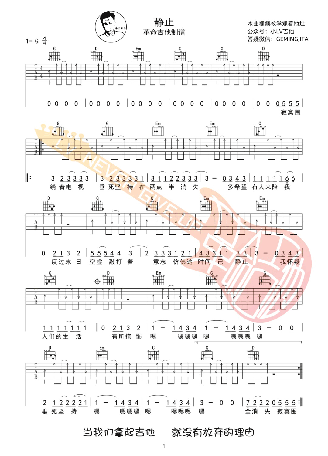 《花儿乐队《静止吉他谱》(E调)》内容来自于互联网,不能保证内容的准确性与完整性,仅供学习交流欣赏,请勿用于其它用途,内容版权归原作者及来源网站所有,如有侵犯到您的权益请来信告知,我们将及时删除。