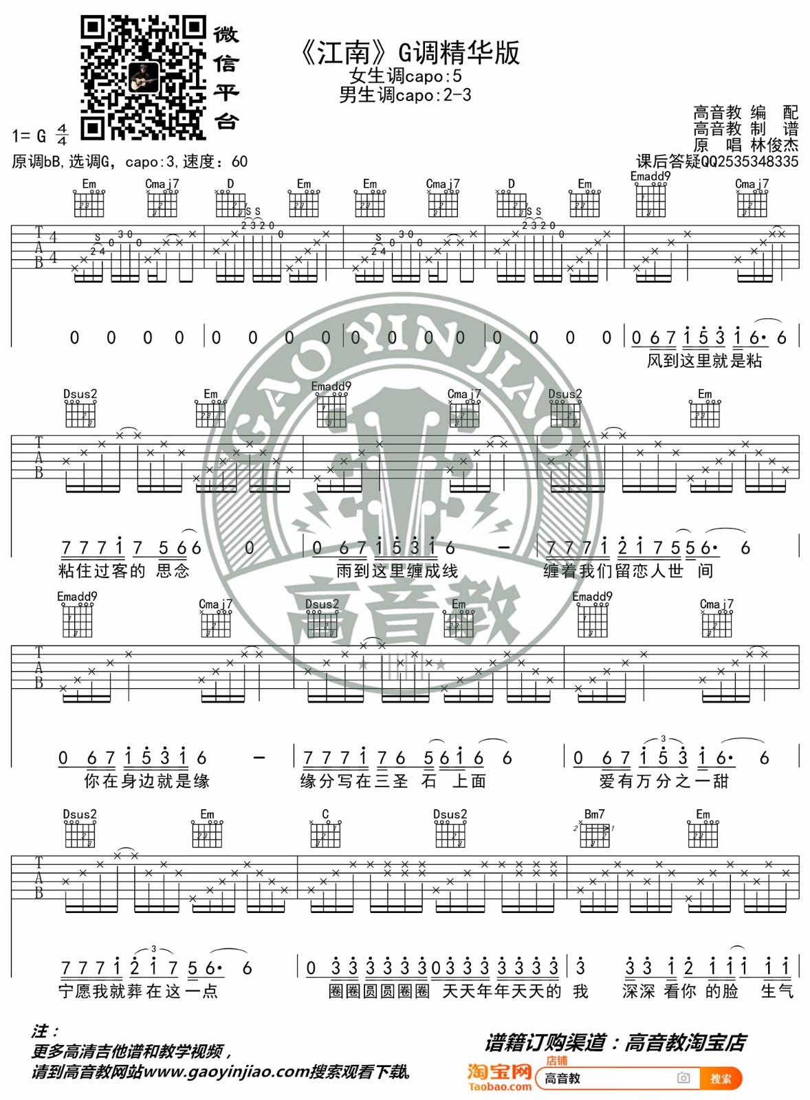 《林俊杰《江南吉他谱》(G调)》内容来自于互联网,不能保证内容的准确性与完整性,仅供学习交流欣赏,请勿用于其它用途,内容版权归原作者及来源网站所有,如有侵犯到您的权益请来信告知,我们将及时删除。