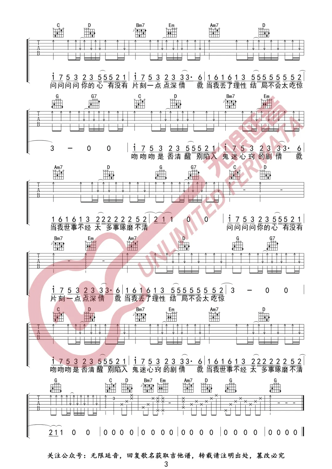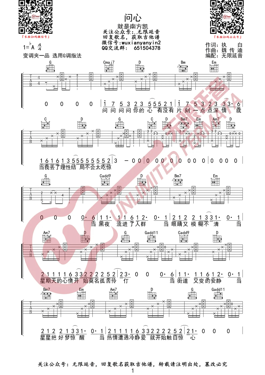 《就是南方凯《问心吉他谱》(C调)》内容来自于互联网,不能保证内容的准确性与完整性,仅供学习交流欣赏,请勿用于其它用途,内容版权归原作者及来源网站所有,如有侵犯到您的权益请来信告知,我们将及时删除。