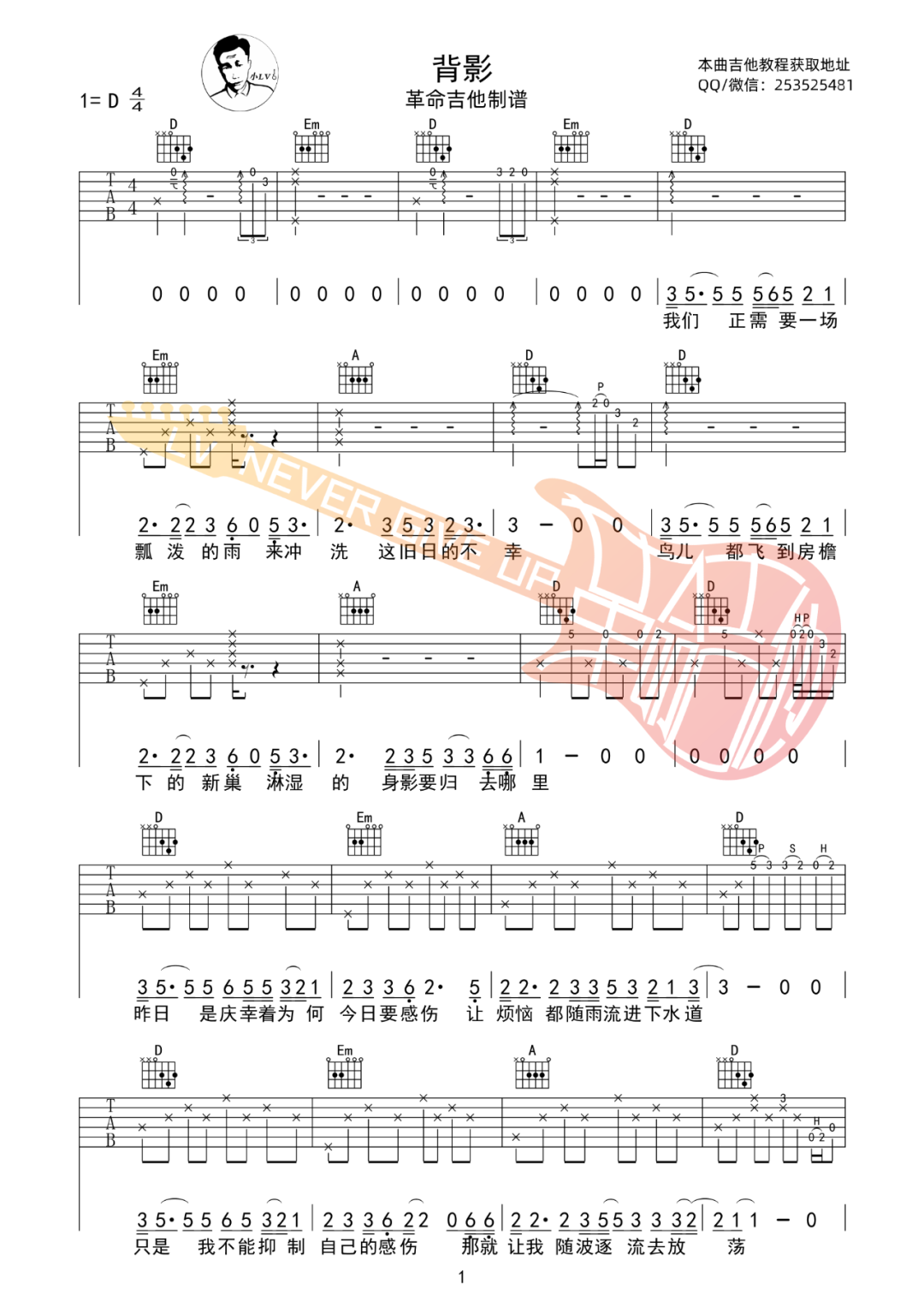《赵雷《背影吉他谱》(C调)》内容来自于互联网,不能保证内容的准确性与完整性,仅供学习交流欣赏,请勿用于其它用途,内容版权归原作者及来源网站所有,如有侵犯到您的权益请来信告知,我们将及时删除。
