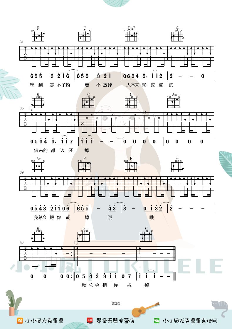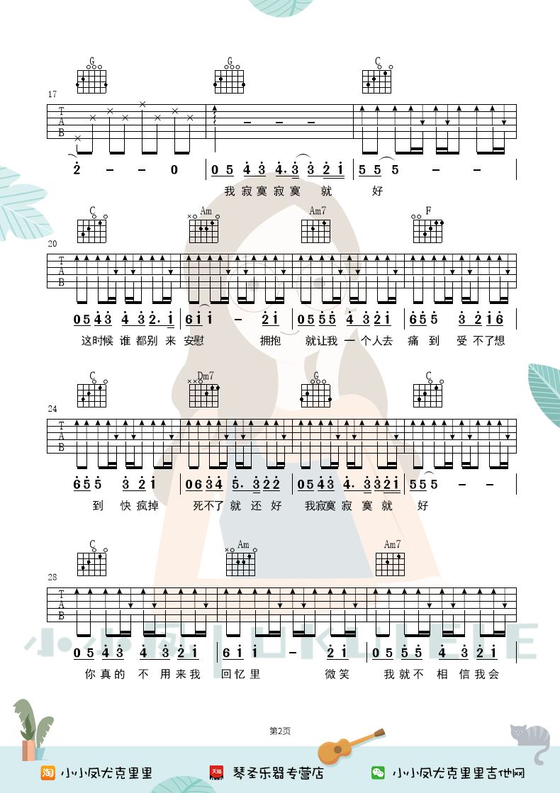 《田馥甄《寂寞寂寞就好吉他谱》(G调)》内容来自于互联网,不能保证内容的准确性与完整性,仅供学习交流欣赏,请勿用于其它用途,内容版权归原作者及来源网站所有,如有侵犯到您的权益请来信告知,我们将及时删除。