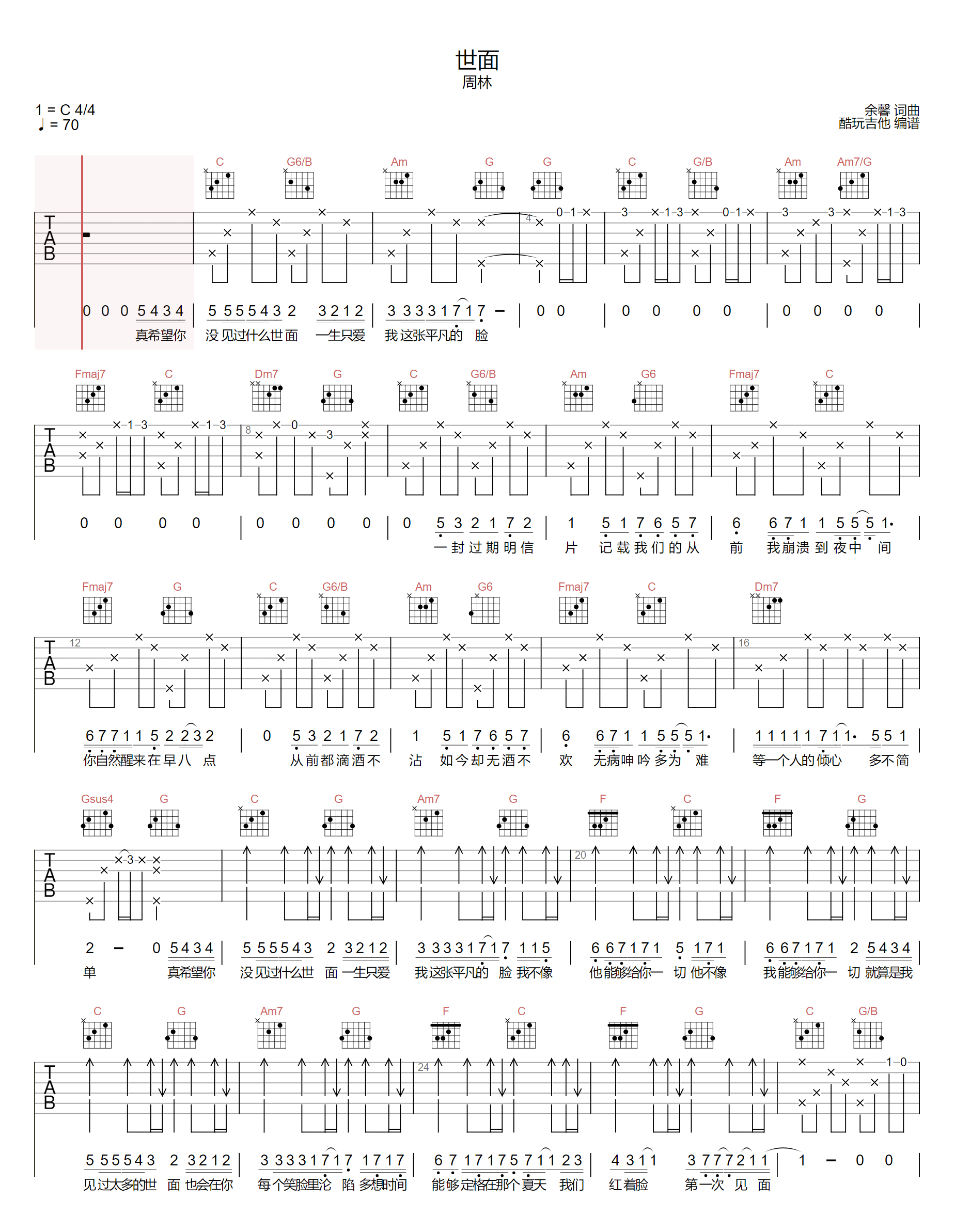 《周林《世面吉他谱》(C调)》内容来自于互联网,不能保证内容的准确性与完整性,仅供学习交流欣赏,请勿用于其它用途,内容版权归原作者及来源网站所有,如有侵犯到您的权益请来信告知,我们将及时删除。