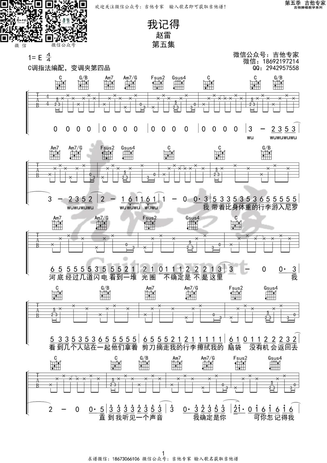 《赵雷《我记得吉他谱》(G调)》内容来自于互联网,不能保证内容的准确性与完整性,仅供学习交流欣赏,请勿用于其它用途,内容版权归原作者及来源网站所有,如有侵犯到您的权益请来信告知,我们将及时删除。