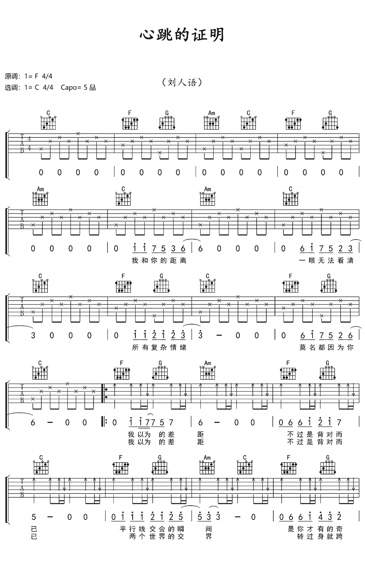 《刘人语《心跳的证明吉他谱》(C调)》内容来自于互联网,不能保证内容的准确性与完整性,仅供学习交流欣赏,请勿用于其它用途,内容版权归原作者及来源网站所有,如有侵犯到您的权益请来信告知,我们将及时删除。