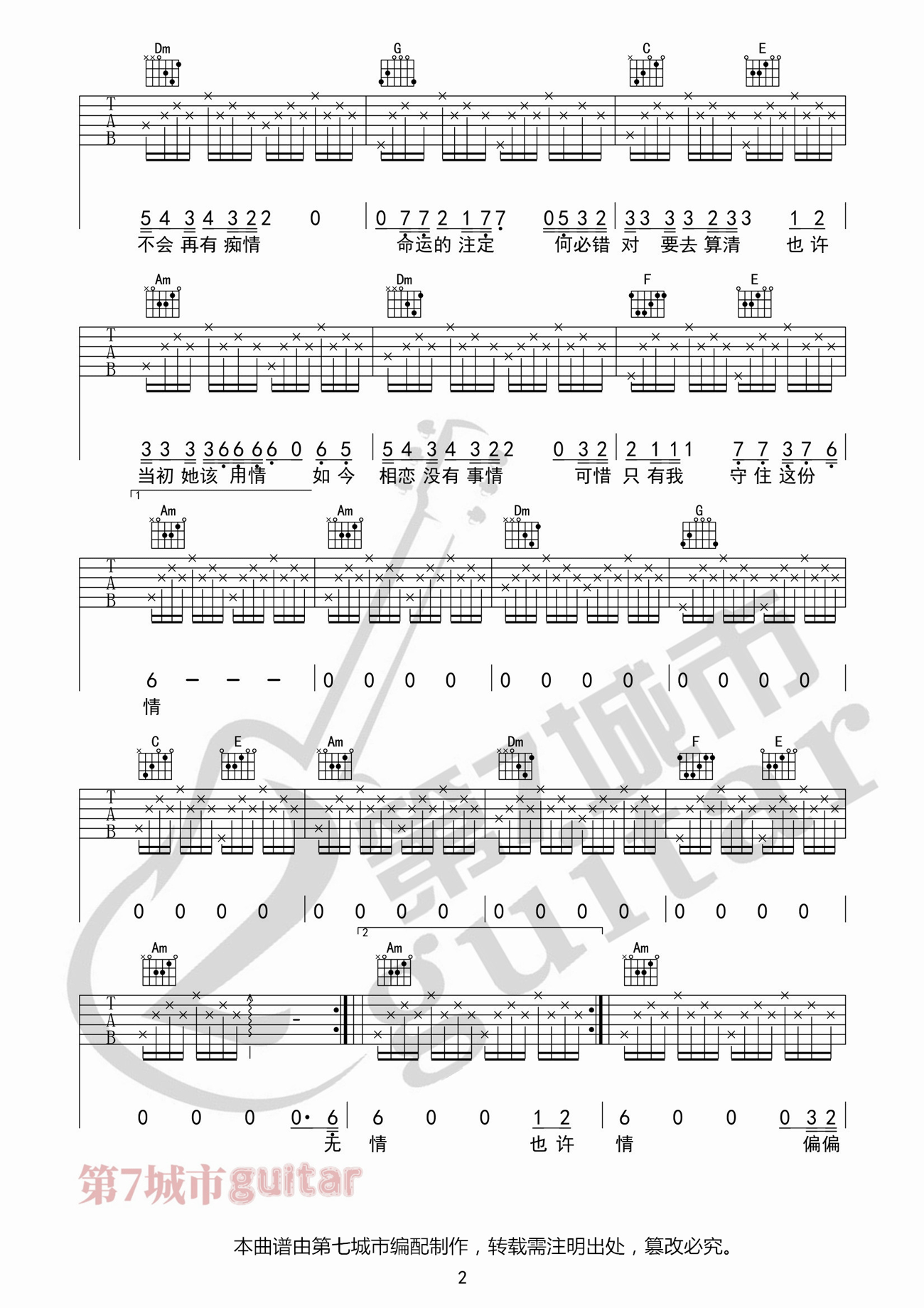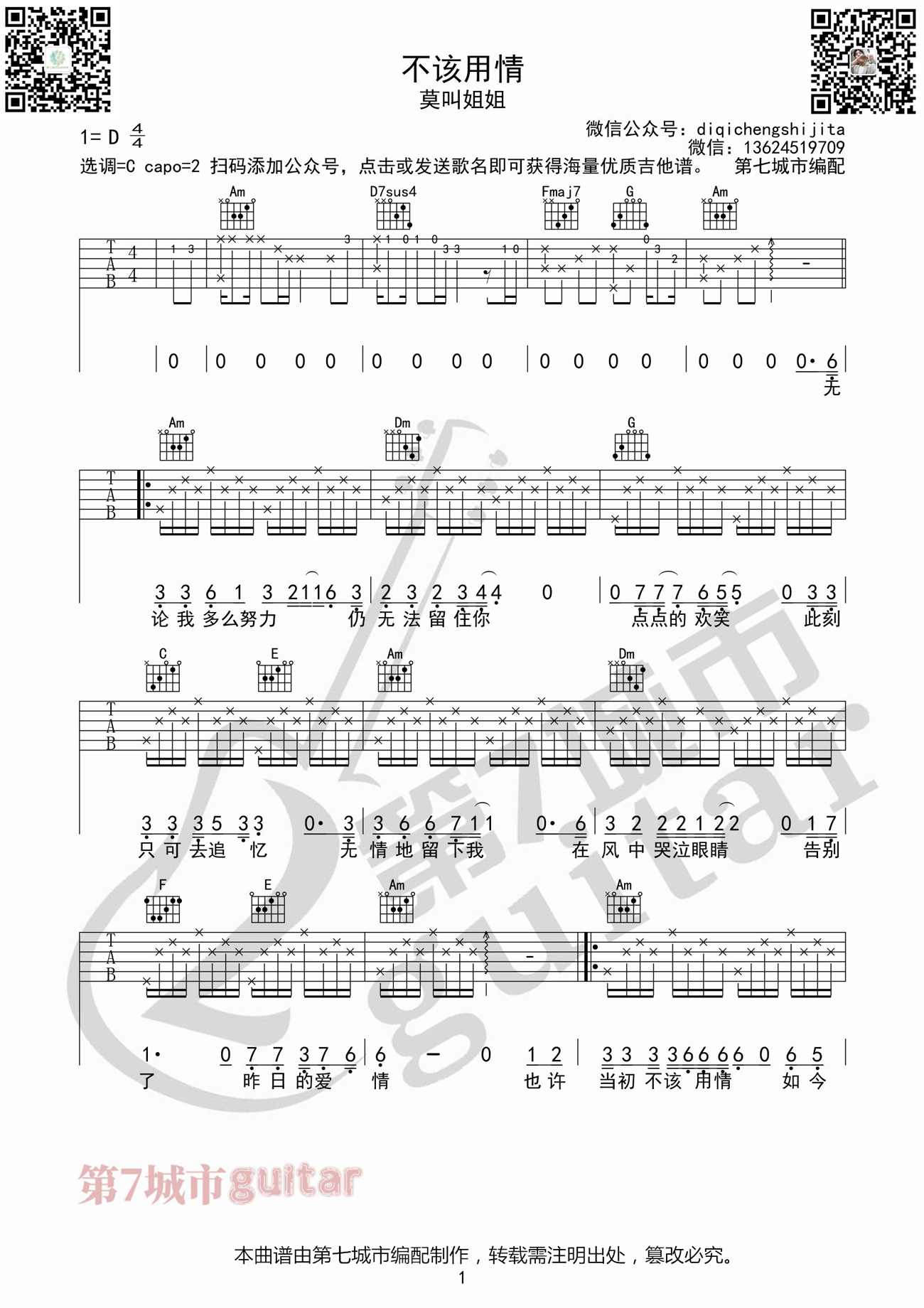 《莫叫姐姐《不该用情吉他谱》(C调)》内容来自于互联网,不能保证内容的准确性与完整性,仅供学习交流欣赏,请勿用于其它用途,内容版权归原作者及来源网站所有,如有侵犯到您的权益请来信告知,我们将及时删除。