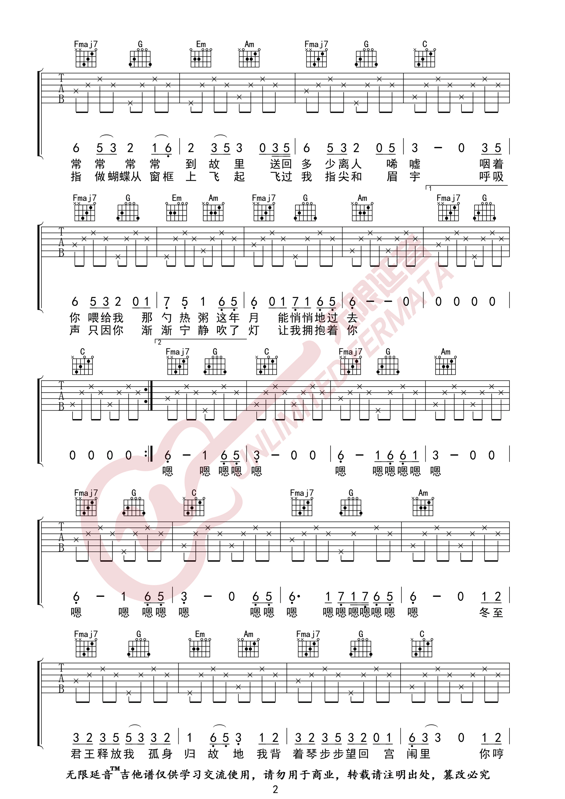 《泥河》由万能青年旅店演唱,采用C调编曲,表达了对生活与命运的深沉思考。歌曲情感层次丰富,前奏部分弹奏难度较高,需注重节奏与力度的把控。后半段运用大量封闭式和弦,增强了音乐的张力与表现力,使整体更具感染力。此版本根据原曲改编,变调夹夹5品,适合进阶吉他手练习。
