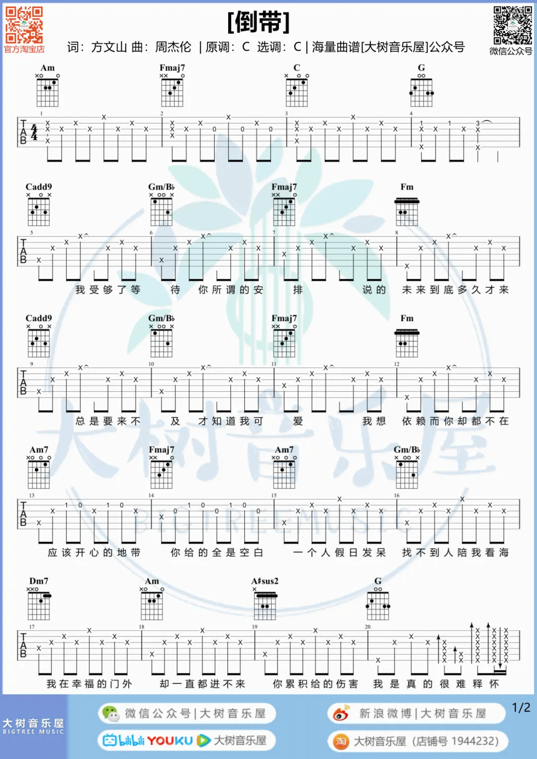 《蔡依林《倒带吉他谱》(C调)》内容来自于互联网,不能保证内容的准确性与完整性,仅供学习交流欣赏,请勿用于其它用途,内容版权归原作者及来源网站所有,如有侵犯到您的权益请来信告知,我们将及时删除。