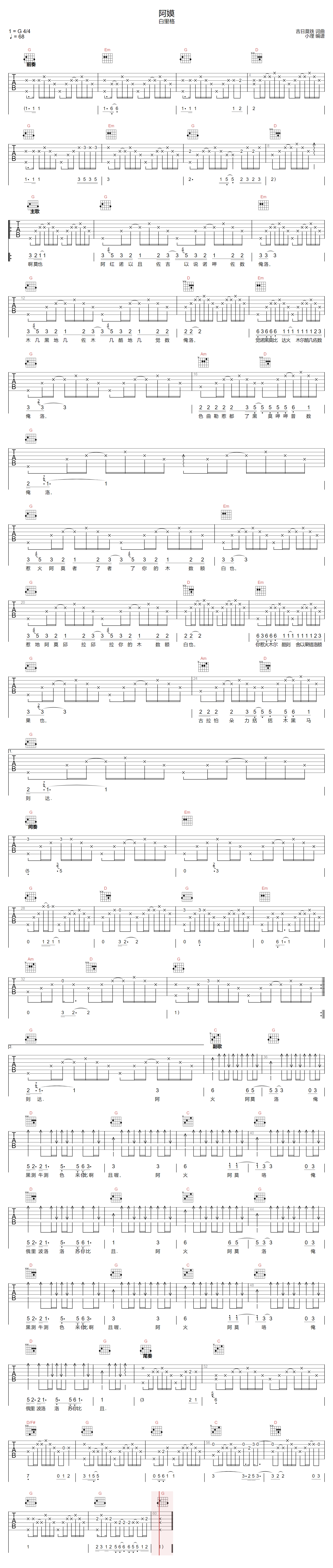 《白里格《阿嫫吉他谱》(G调)》内容来自于互联网,不能保证内容的准确性与完整性,仅供学习交流欣赏,请勿用于其它用途,内容版权归原作者及来源网站所有,如有侵犯到您的权益请来信告知,我们将及时删除。