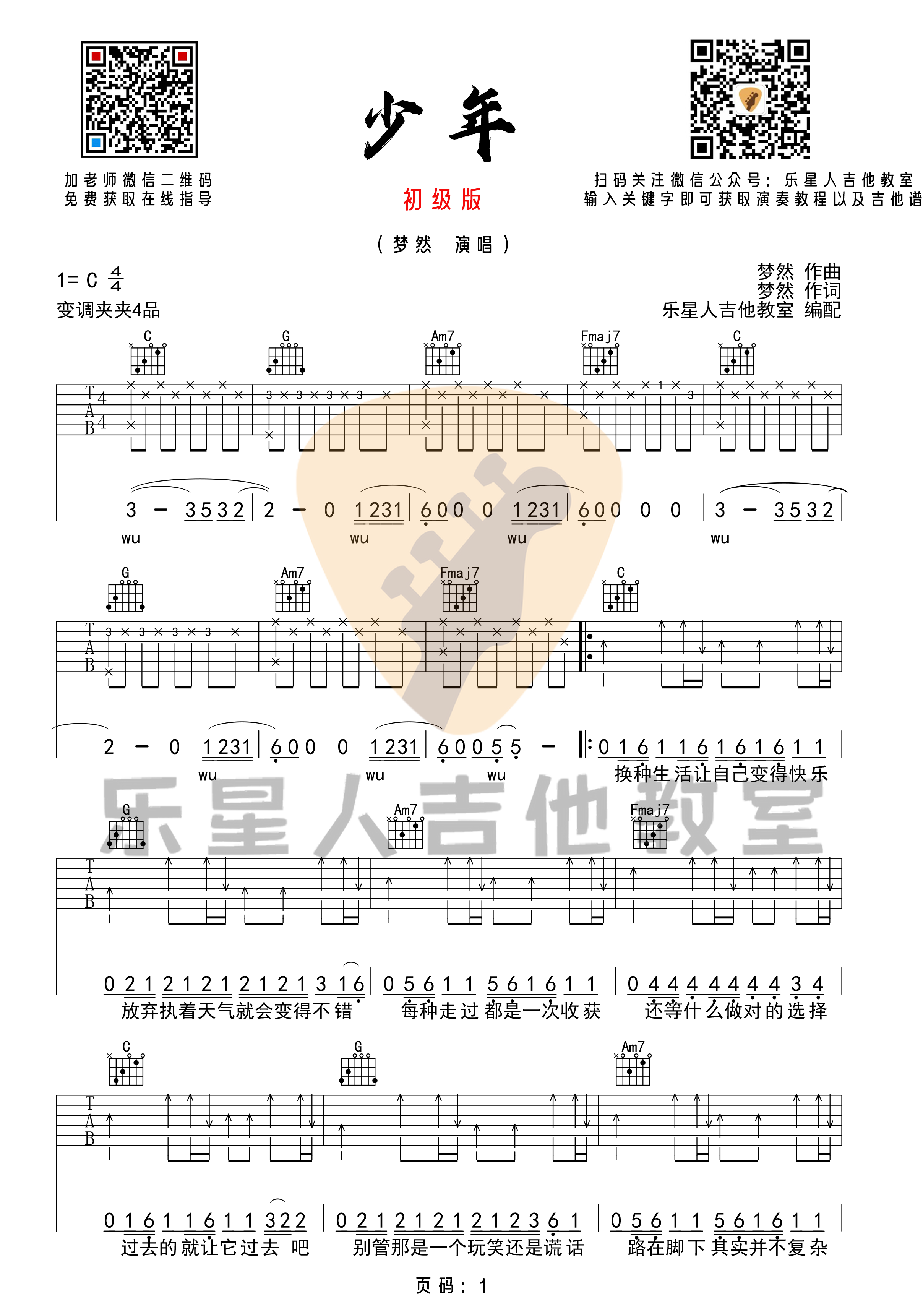 《梦然《少年吉他谱》(C调)》内容来自于互联网,不能保证内容的准确性与完整性,仅供学习交流欣赏,请勿用于其它用途,内容版权归原作者及来源网站所有,如有侵犯到您的权益请来信告知,我们将及时删除。