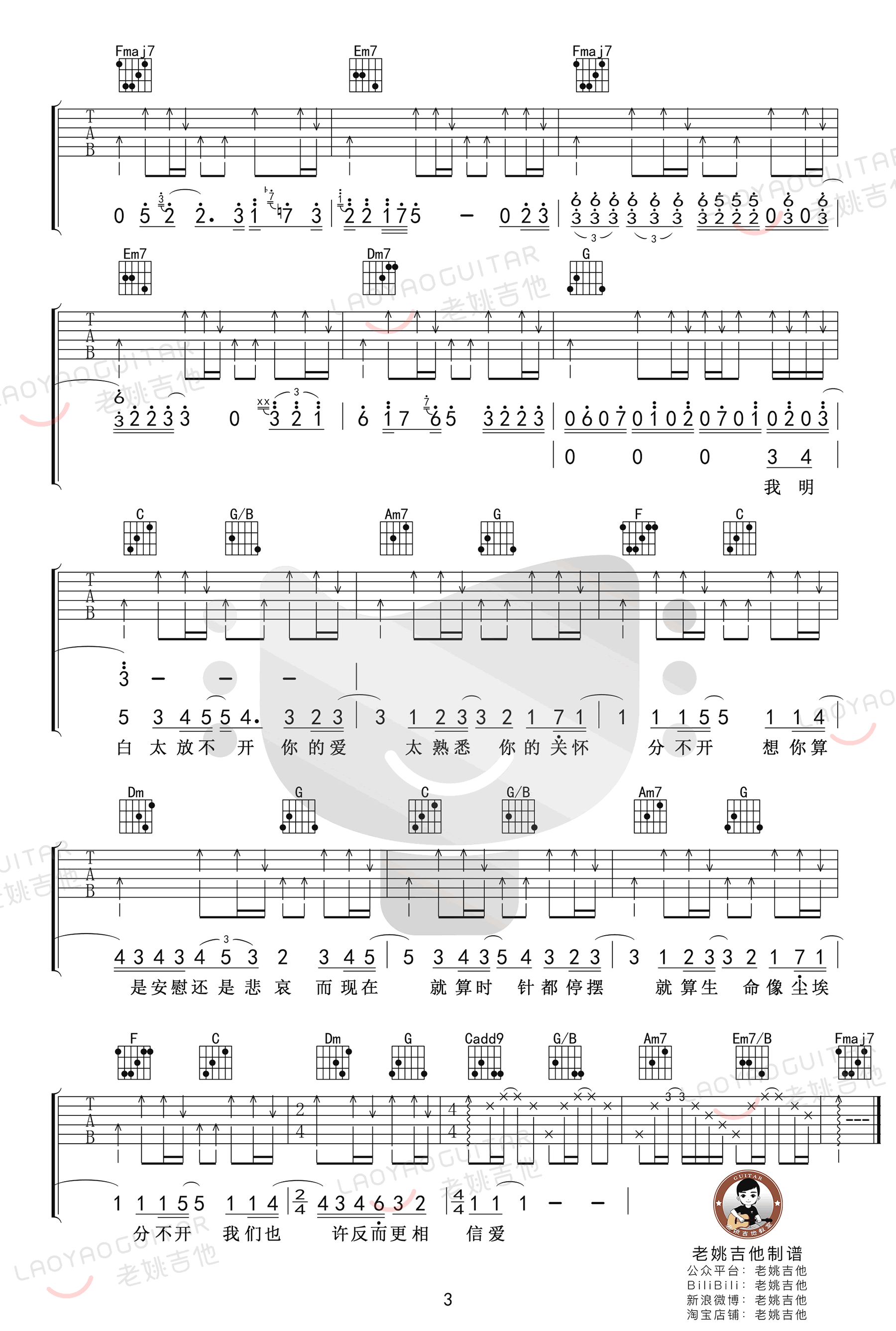 《忽然之间》是莫文蔚的经典情歌,以C调演绎,温柔细腻的嗓音传递深情告白。歌曲表达了对爱情瞬间的感悟与怀念,情感真挚动人。弹奏时需运用变调夹调整音高,节奏型参考图片谱,注重柔和指法与连贯扫弦,突出旋律的流畅与情感层次。整体简洁优美,适合吉他弹唱,易于学习与演绎。