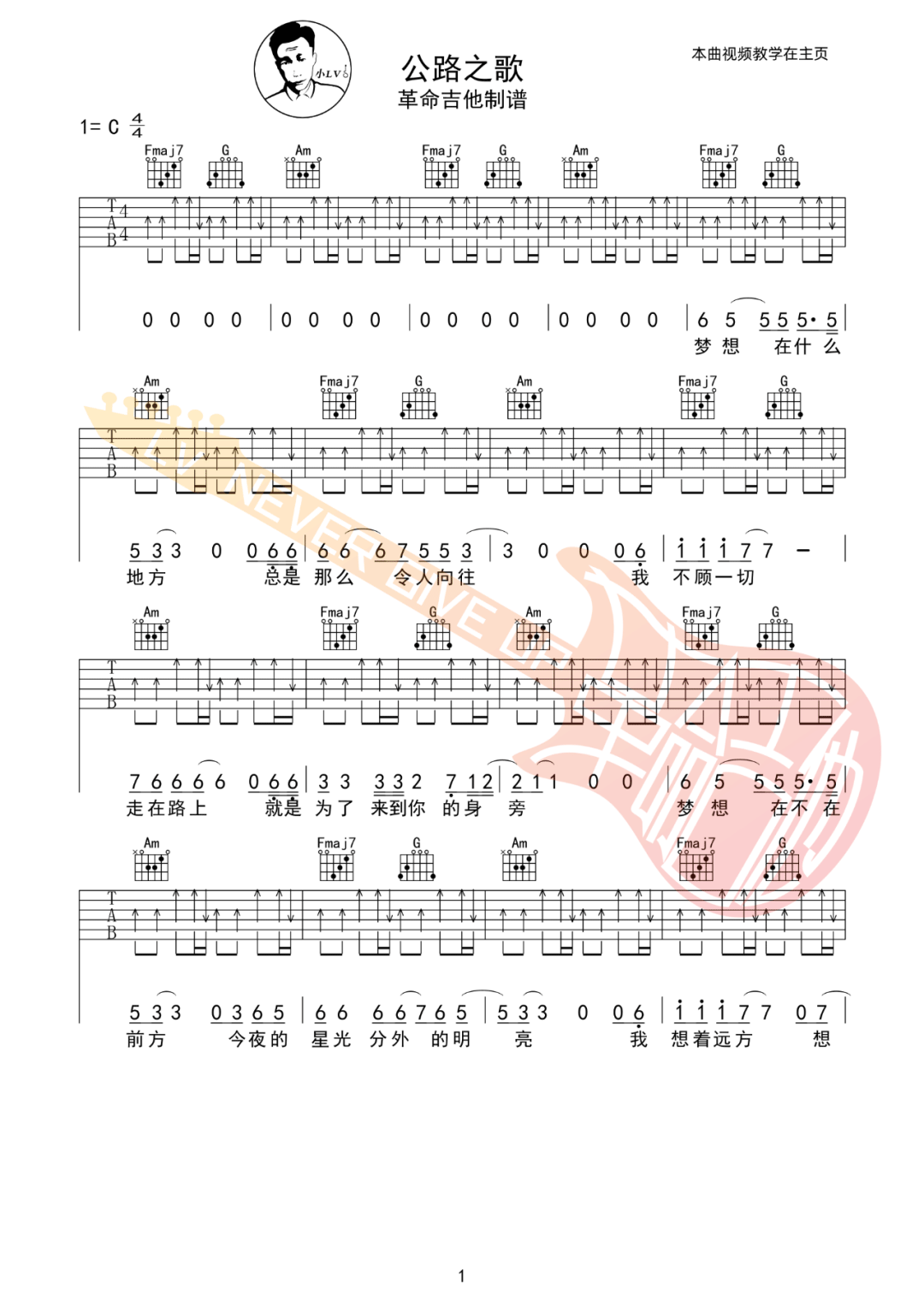 《痛仰乐队《公路之歌吉他谱》(C调)》内容来自于互联网,不能保证内容的准确性与完整性,仅供学习交流欣赏,请勿用于其它用途,内容版权归原作者及来源网站所有,如有侵犯到您的权益请来信告知,我们将及时删除。
