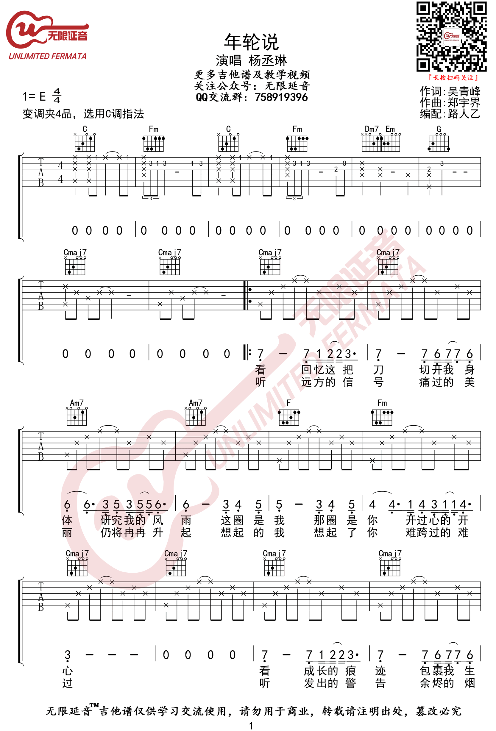 《杨丞琳《年轮说吉他谱》(G调)》内容来自于互联网,不能保证内容的准确性与完整性,仅供学习交流欣赏,请勿用于其它用途,内容版权归原作者及来源网站所有,如有侵犯到您的权益请来信告知,我们将及时删除。