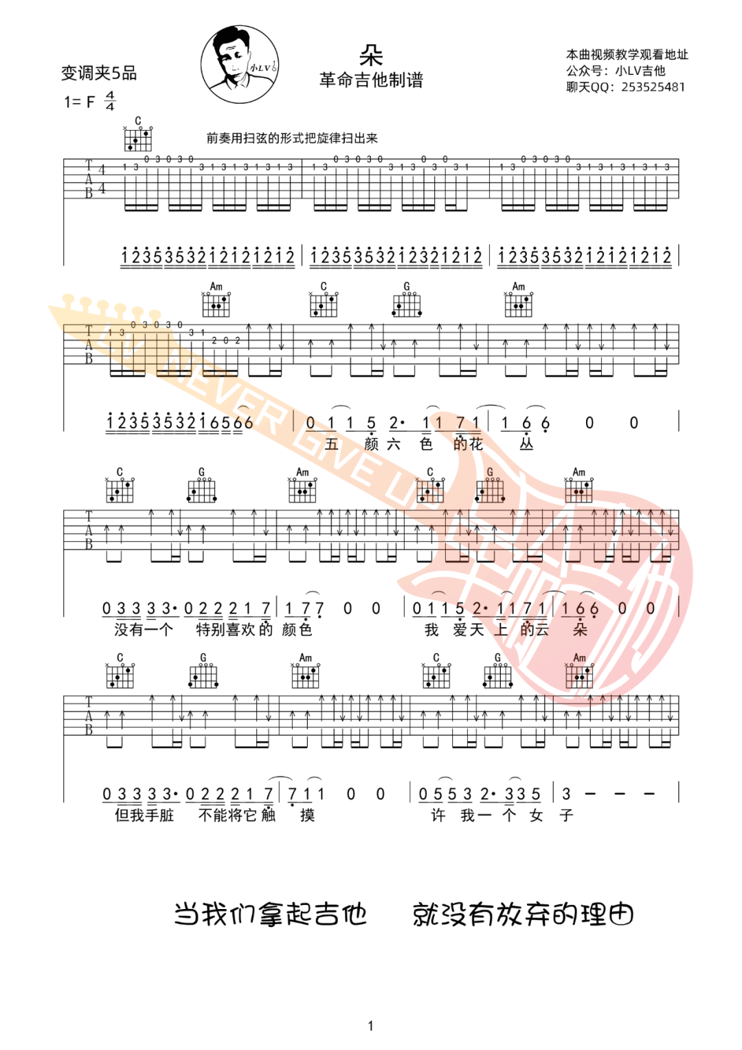 《赵雷《朵吉他谱》(G调)》内容来自于互联网,不能保证内容的准确性与完整性,仅供学习交流欣赏,请勿用于其它用途,内容版权归原作者及来源网站所有,如有侵犯到您的权益请来信告知,我们将及时删除。