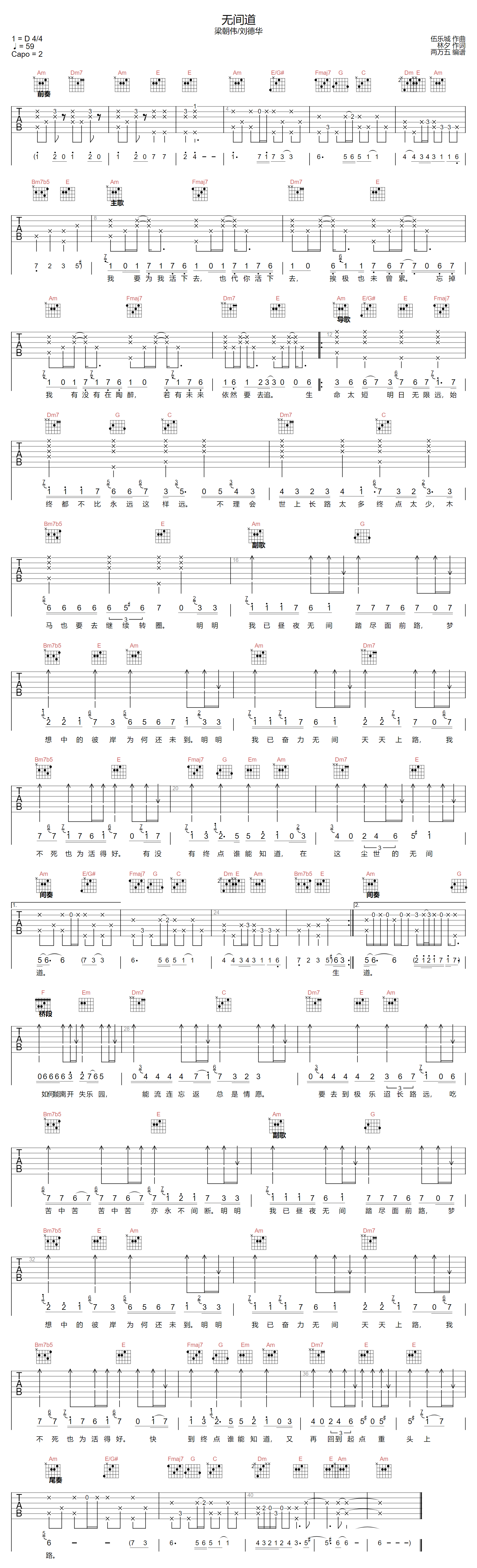 《刘德华/梁朝伟《无间道吉他谱》(D调)》内容来自于互联网,不能保证内容的准确性与完整性,仅供学习交流欣赏,请勿用于其它用途,内容版权归原作者及来源网站所有,如有侵犯到您的权益请来信告知,我们将及时删除。