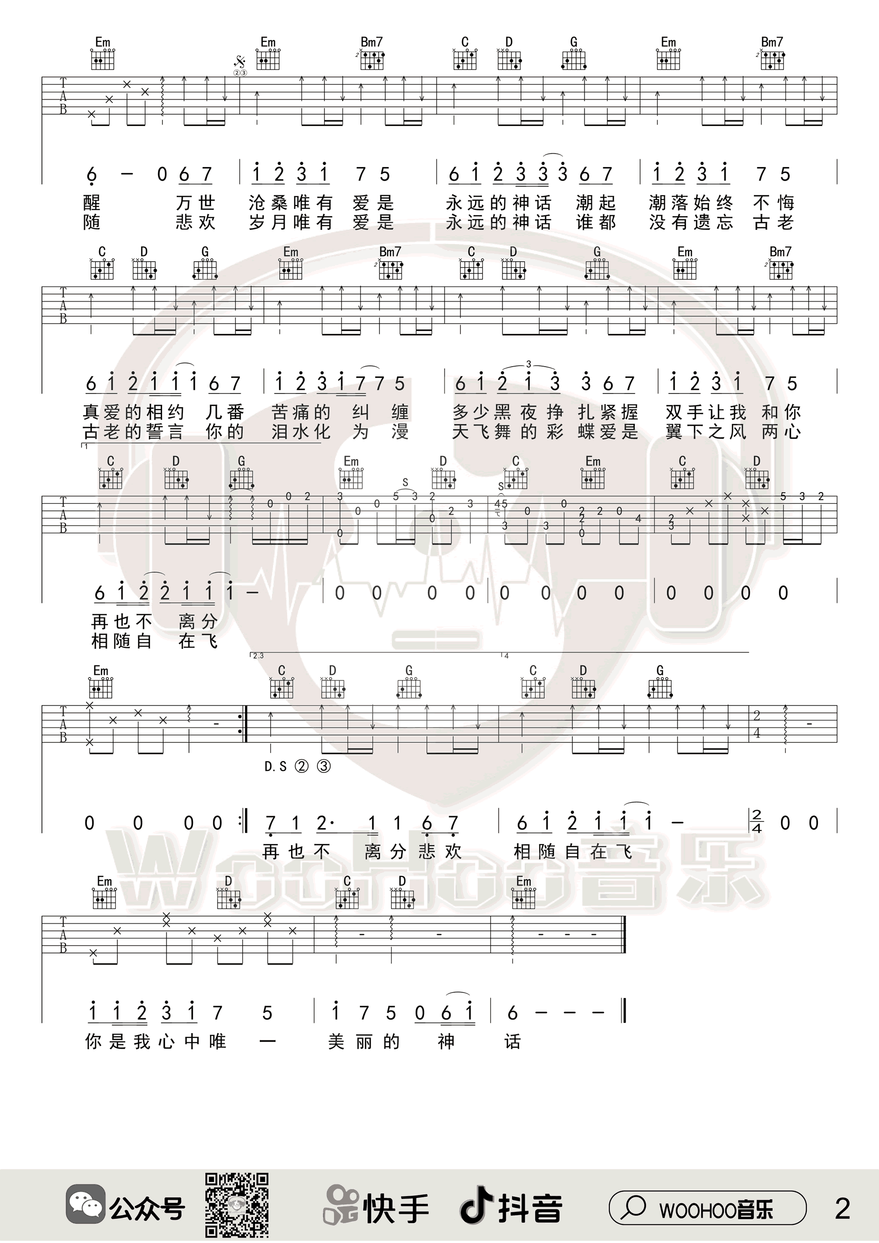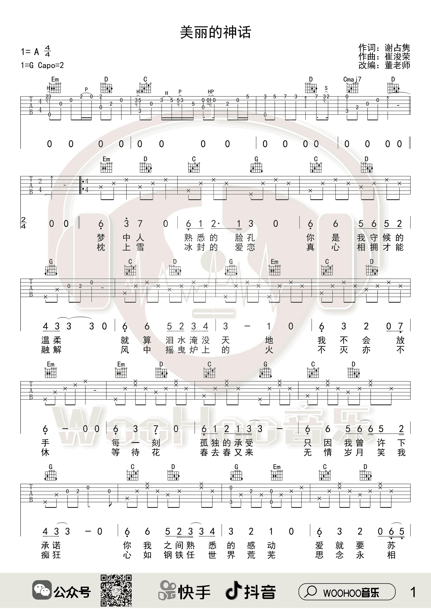 《孙楠/韩红《美丽的神话吉他谱》(C调)》内容来自于互联网,不能保证内容的准确性与完整性,仅供学习交流欣赏,请勿用于其它用途,内容版权归原作者及来源网站所有,如有侵犯到您的权益请来信告知,我们将及时删除。