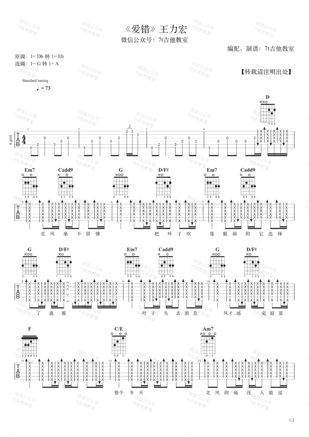 《王力宏《爱错吉他谱》(C调)》内容来自于互联网,不能保证内容的准确性与完整性,仅供学习交流欣赏,请勿用于其它用途,内容版权归原作者及来源网站所有,如有侵犯到您的权益请来信告知,我们将及时删除。