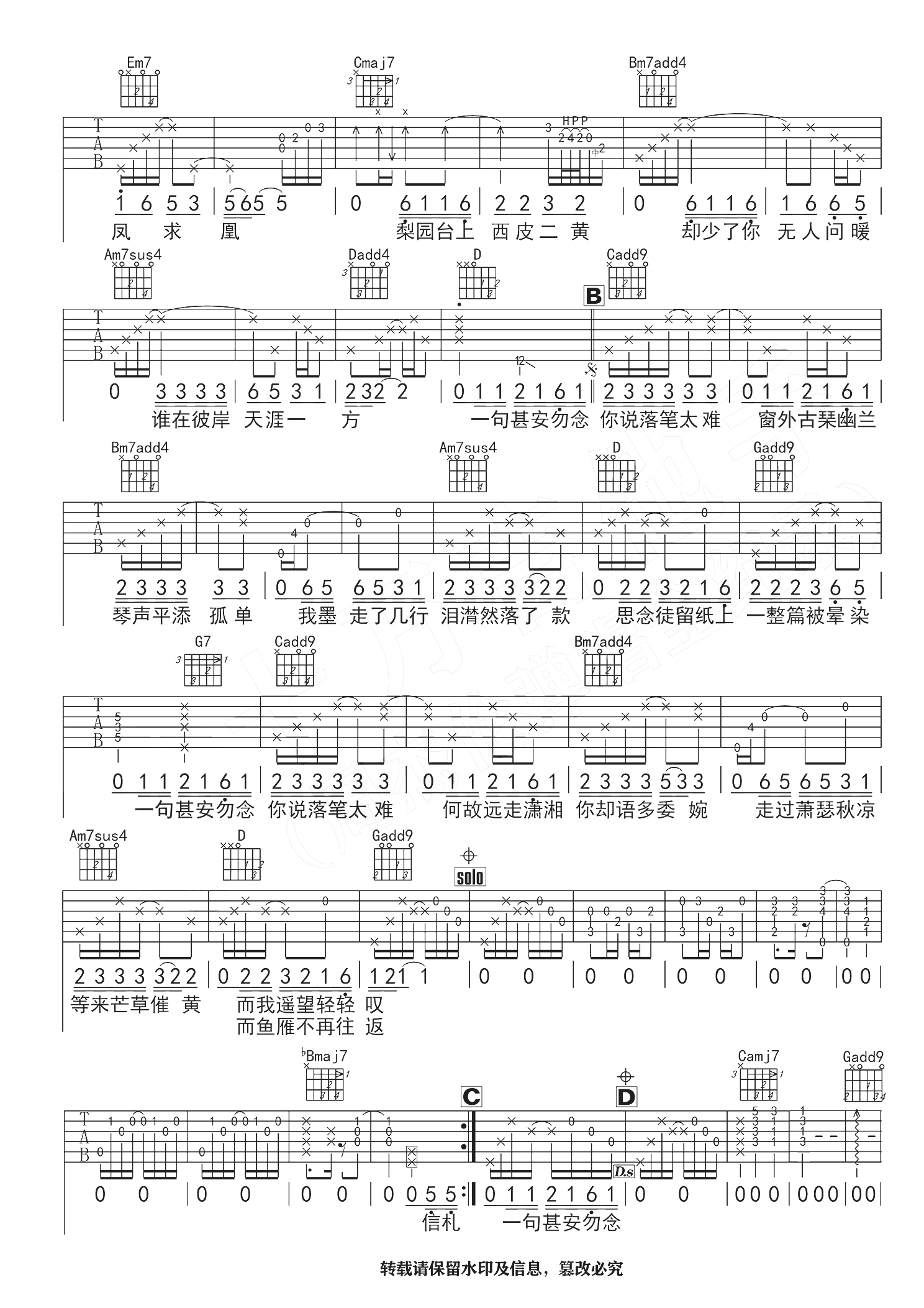 《周杰伦《红颜如霜吉他谱》(C调)》内容来自于互联网,不能保证内容的准确性与完整性,仅供学习交流欣赏,请勿用于其它用途,内容版权归原作者及来源网站所有,如有侵犯到您的权益请来信告知,我们将及时删除。