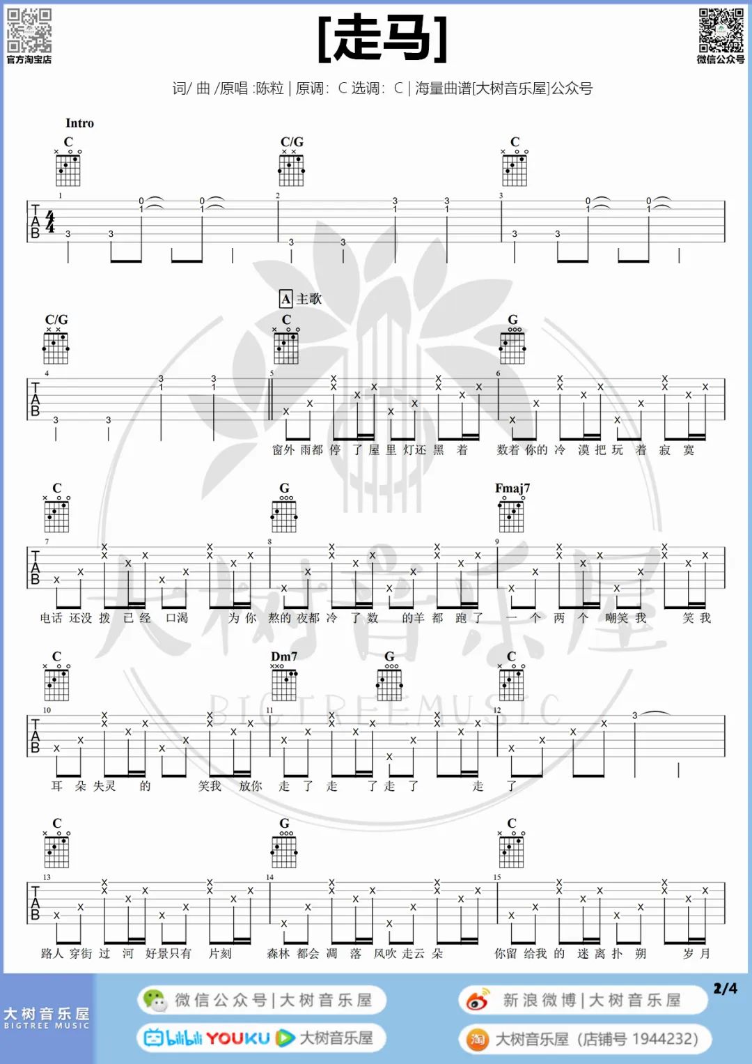 《陈粒《走马吉他谱》(C调)》内容来自于互联网,不能保证内容的准确性与完整性,仅供学习交流欣赏,请勿用于其它用途,内容版权归原作者及来源网站所有,如有侵犯到您的权益请来信告知,我们将及时删除。