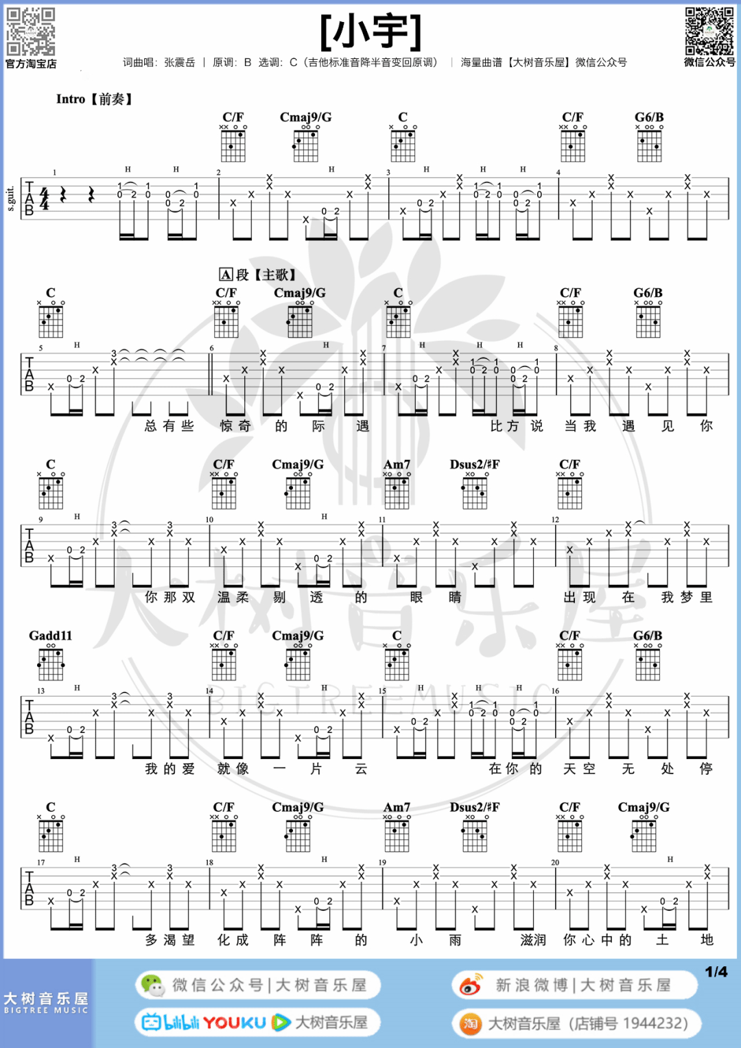 《张震岳《小宇吉他谱》(G调)》内容来自于互联网,不能保证内容的准确性与完整性,仅供学习交流欣赏,请勿用于其它用途,内容版权归原作者及来源网站所有,如有侵犯到您的权益请来信告知,我们将及时删除。