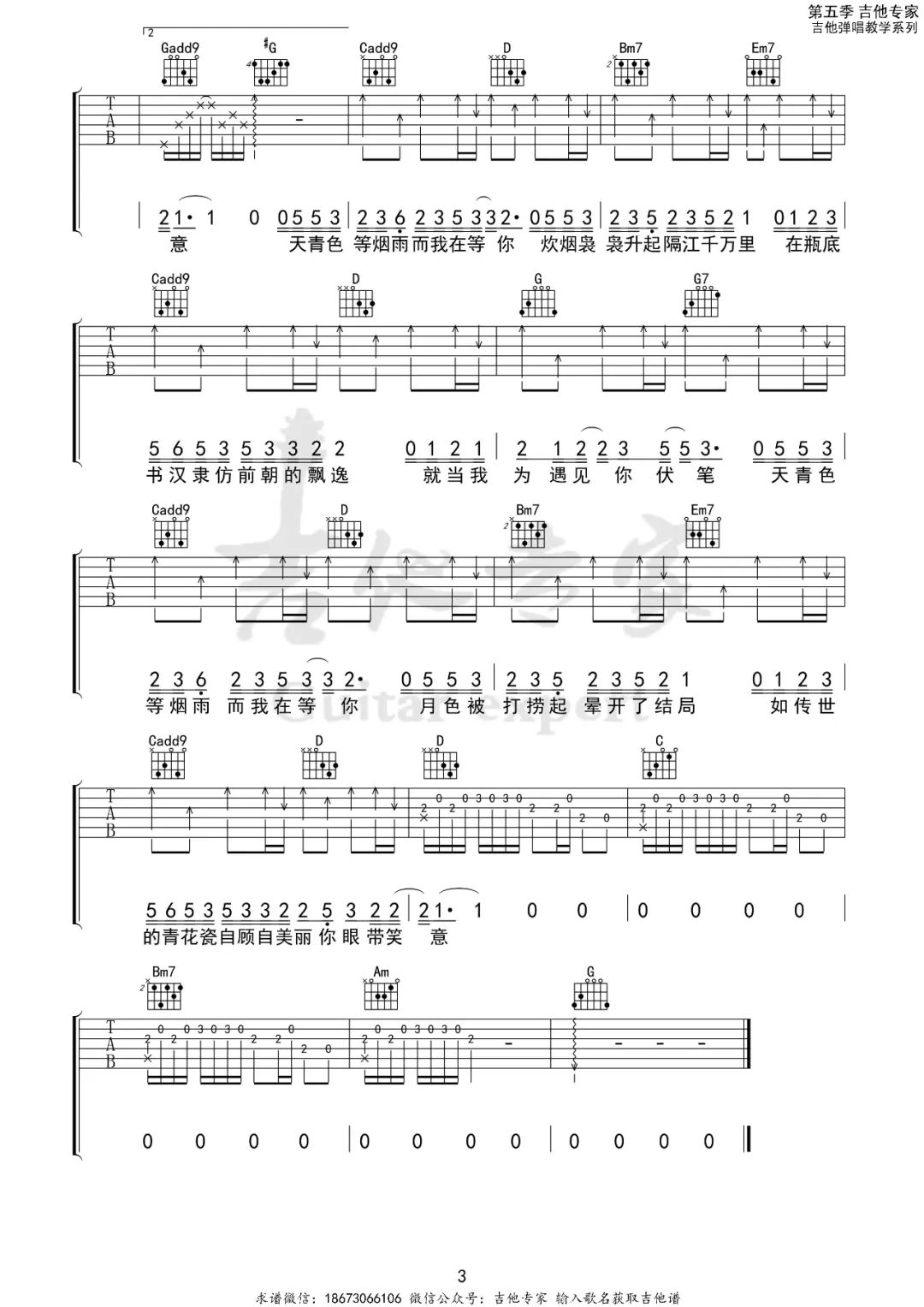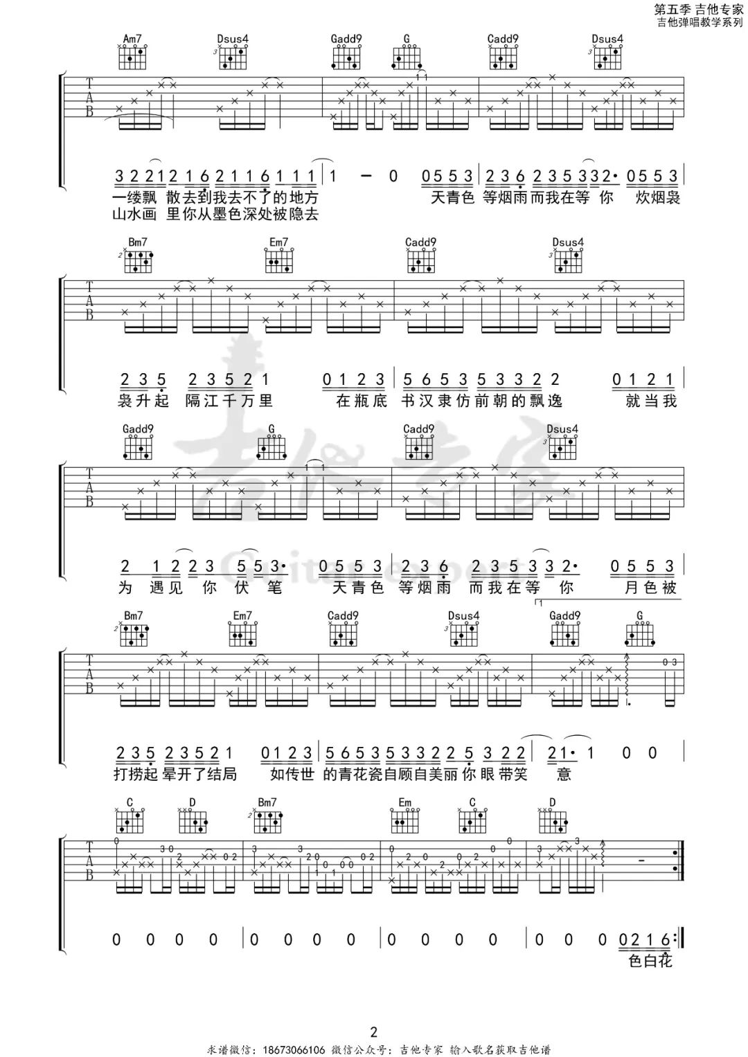 《周杰伦《青花瓷吉他谱》(C调)》内容来自于互联网,不能保证内容的准确性与完整性,仅供学习交流欣赏,请勿用于其它用途,内容版权归原作者及来源网站所有,如有侵犯到您的权益请来信告知,我们将及时删除。