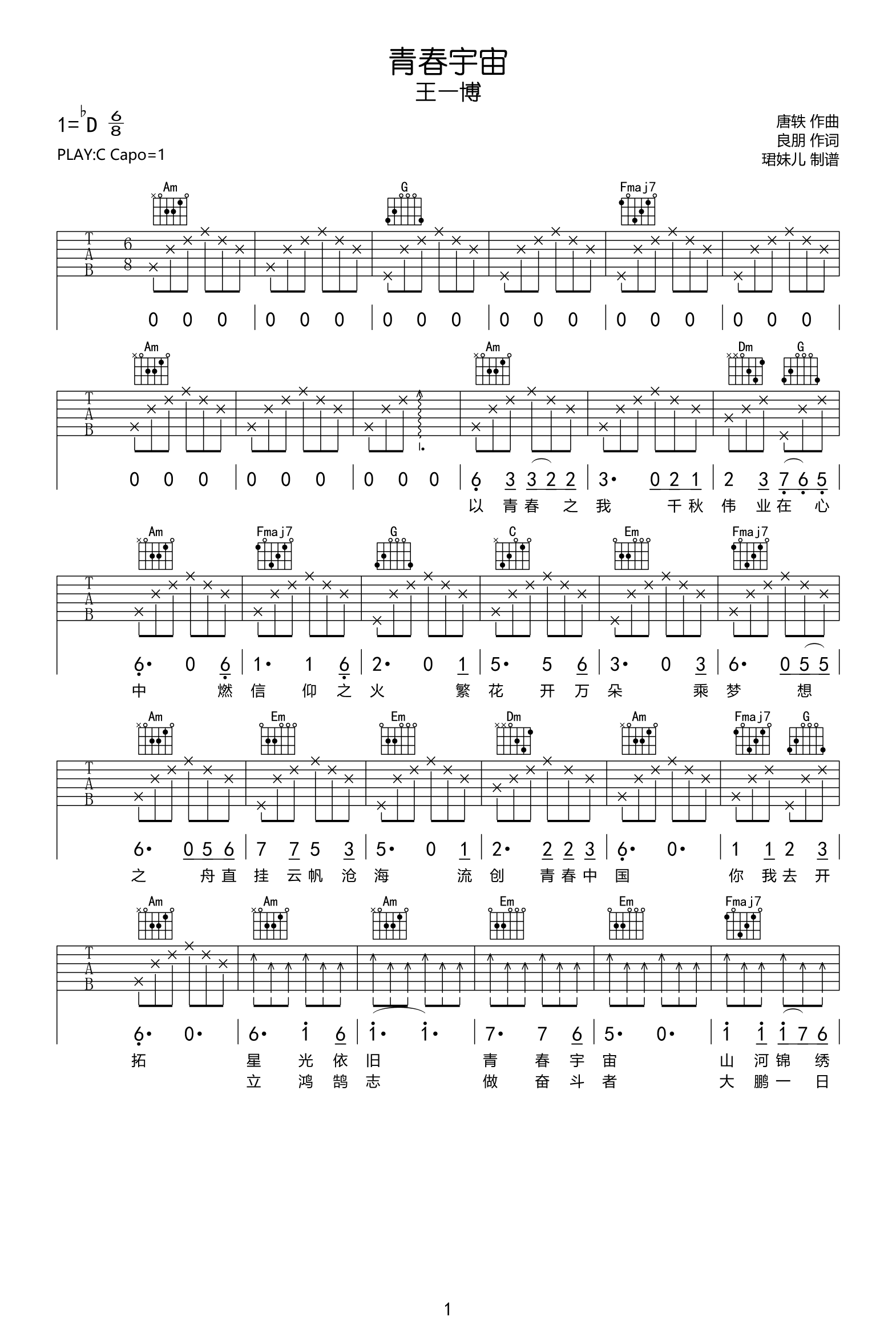 《王一博《青春宇宙吉他谱》(G调)》内容来自于互联网,不能保证内容的准确性与完整性,仅供学习交流欣赏,请勿用于其它用途,内容版权归原作者及来源网站所有,如有侵犯到您的权益请来信告知,我们将及时删除。