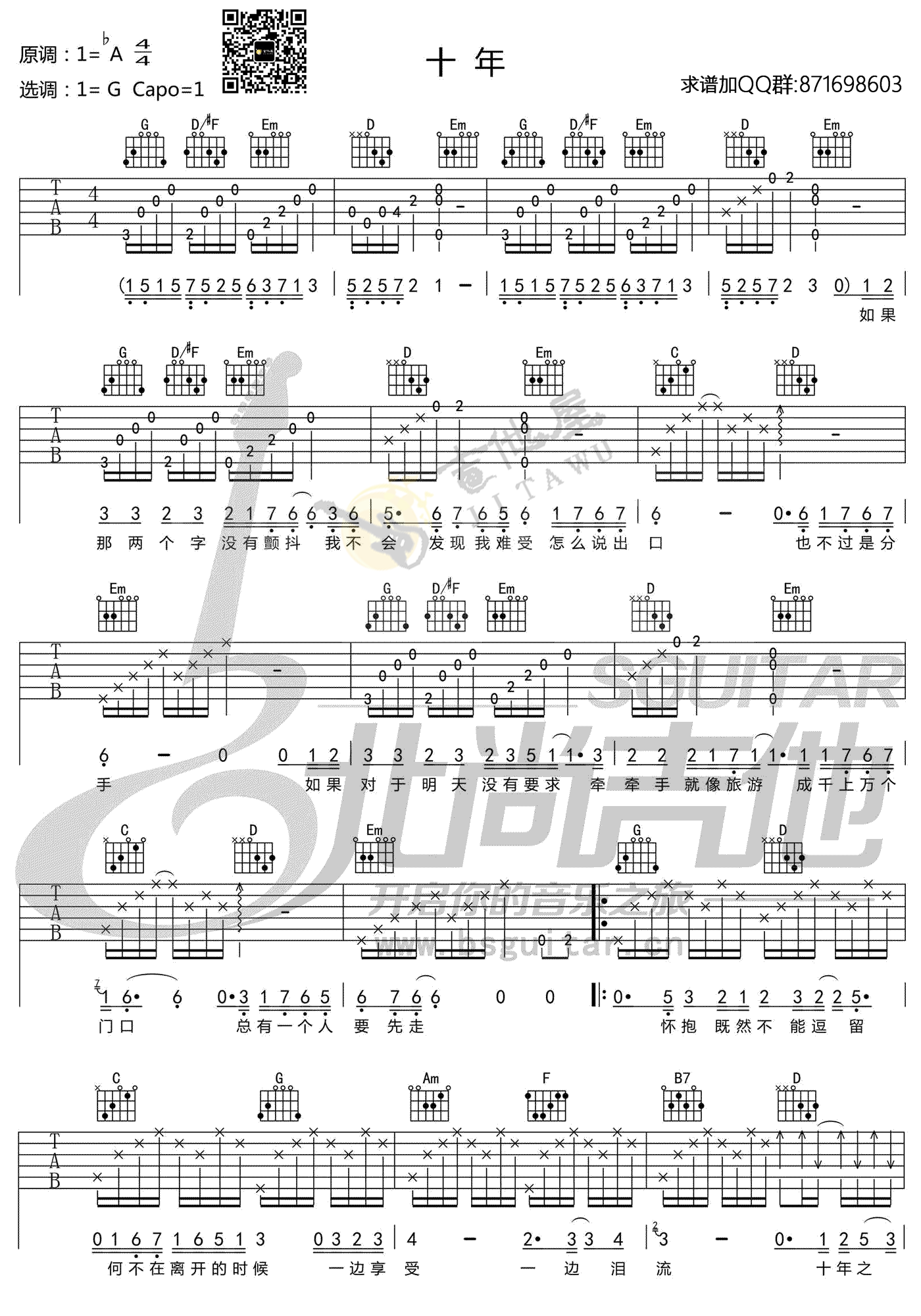《陈奕迅《十年吉他谱》(C调)》内容来自于互联网,不能保证内容的准确性与完整性,仅供学习交流欣赏,请勿用于其它用途,内容版权归原作者及来源网站所有,如有侵犯到您的权益请来信告知,我们将及时删除。