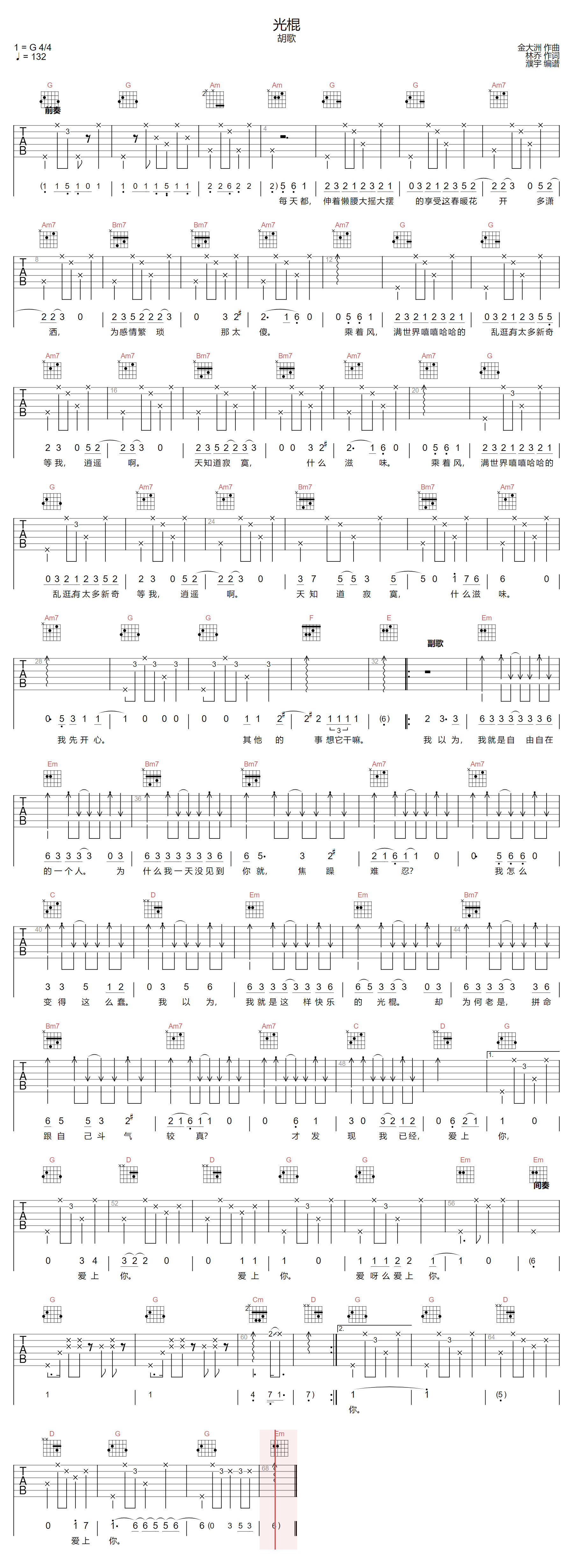 《胡歌《光棍吉他谱》(C调)》内容来自于互联网,不能保证内容的准确性与完整性,仅供学习交流欣赏,请勿用于其它用途,内容版权归原作者及来源网站所有,如有侵犯到您的权益请来信告知,我们将及时删除。