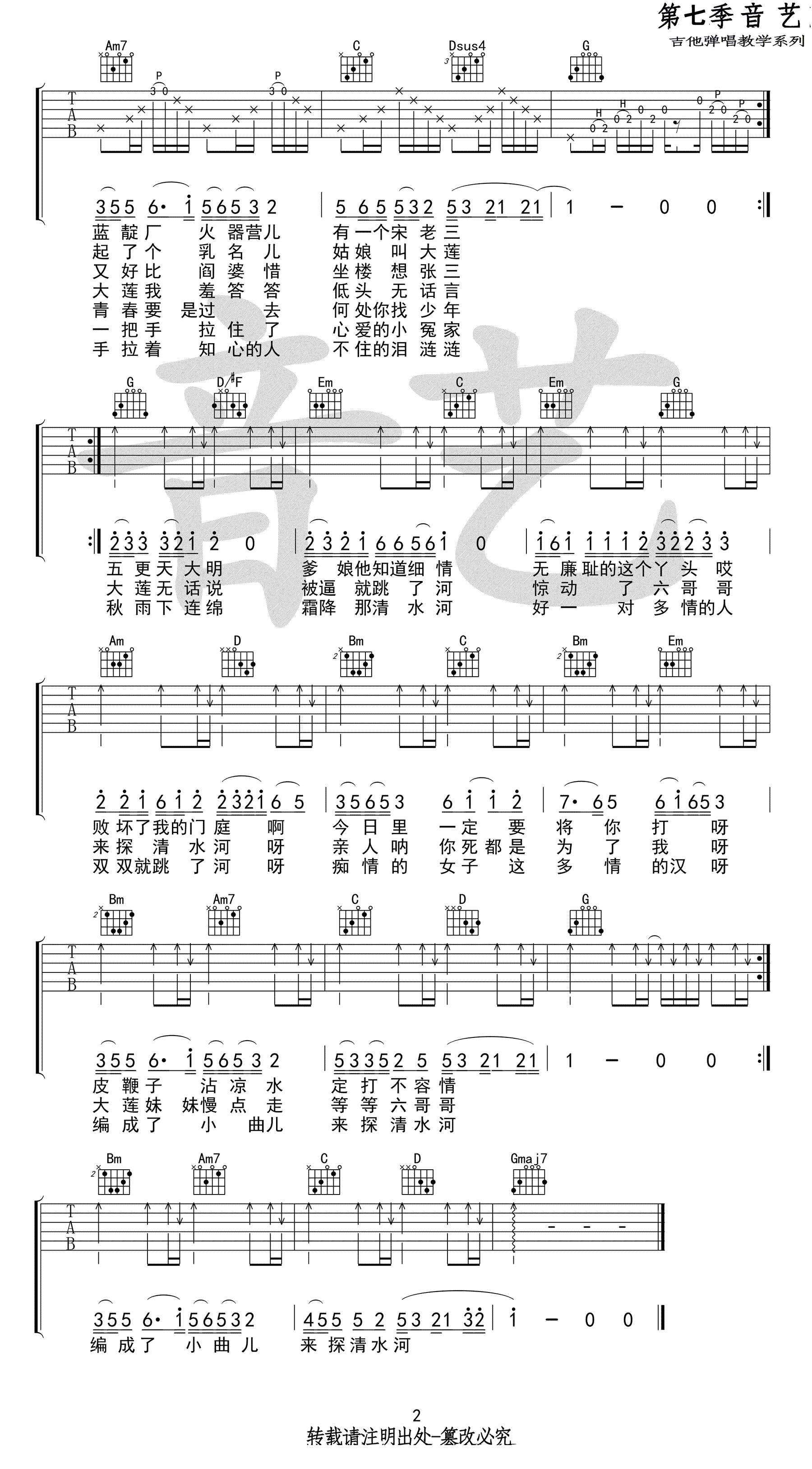 《晓月老板《探清水河吉他谱》(C调)》内容来自于互联网,不能保证内容的准确性与完整性,仅供学习交流欣赏,请勿用于其它用途,内容版权归原作者及来源网站所有,如有侵犯到您的权益请来信告知,我们将及时删除。