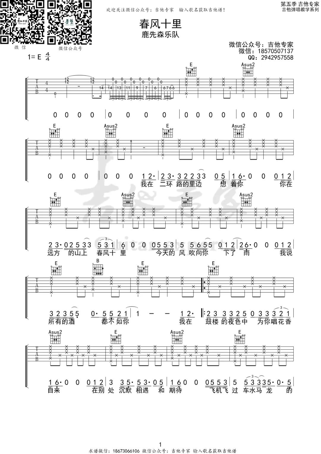 《鹿先森乐队《春风十里吉他谱》(C调)》内容来自于互联网,不能保证内容的准确性与完整性,仅供学习交流欣赏,请勿用于其它用途,内容版权归原作者及来源网站所有,如有侵犯到您的权益请来信告知,我们将及时删除。