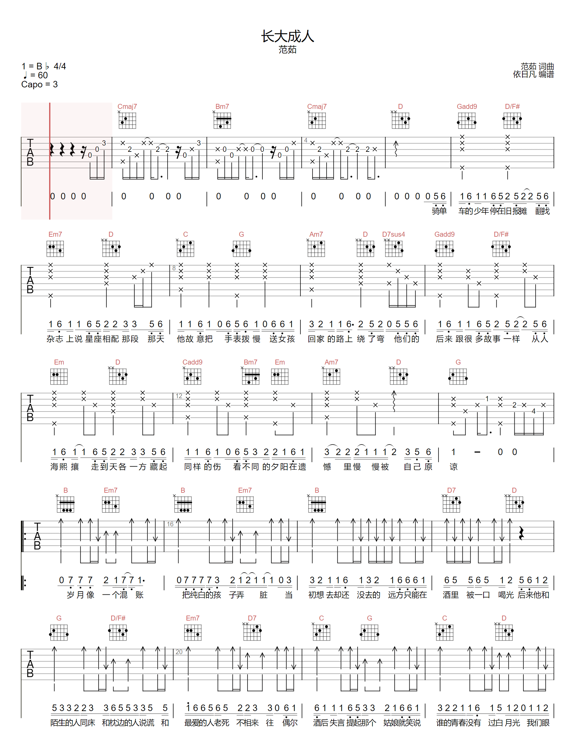 《范茹《长大成人吉他谱》(C调)》内容来自于互联网,不能保证内容的准确性与完整性,仅供学习交流欣赏,请勿用于其它用途,内容版权归原作者及来源网站所有,如有侵犯到您的权益请来信告知,我们将及时删除。