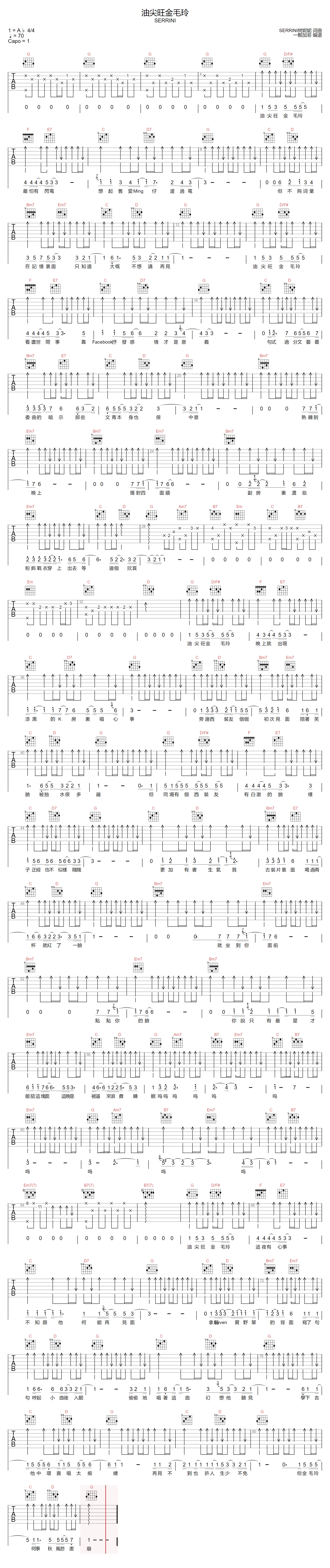 《SERRINI《油尖旺金毛玲吉他谱》(C调)》内容来自于互联网,不能保证内容的准确性与完整性,仅供学习交流欣赏,请勿用于其它用途,内容版权归原作者及来源网站所有,如有侵犯到您的权益请来信告知,我们将及时删除。