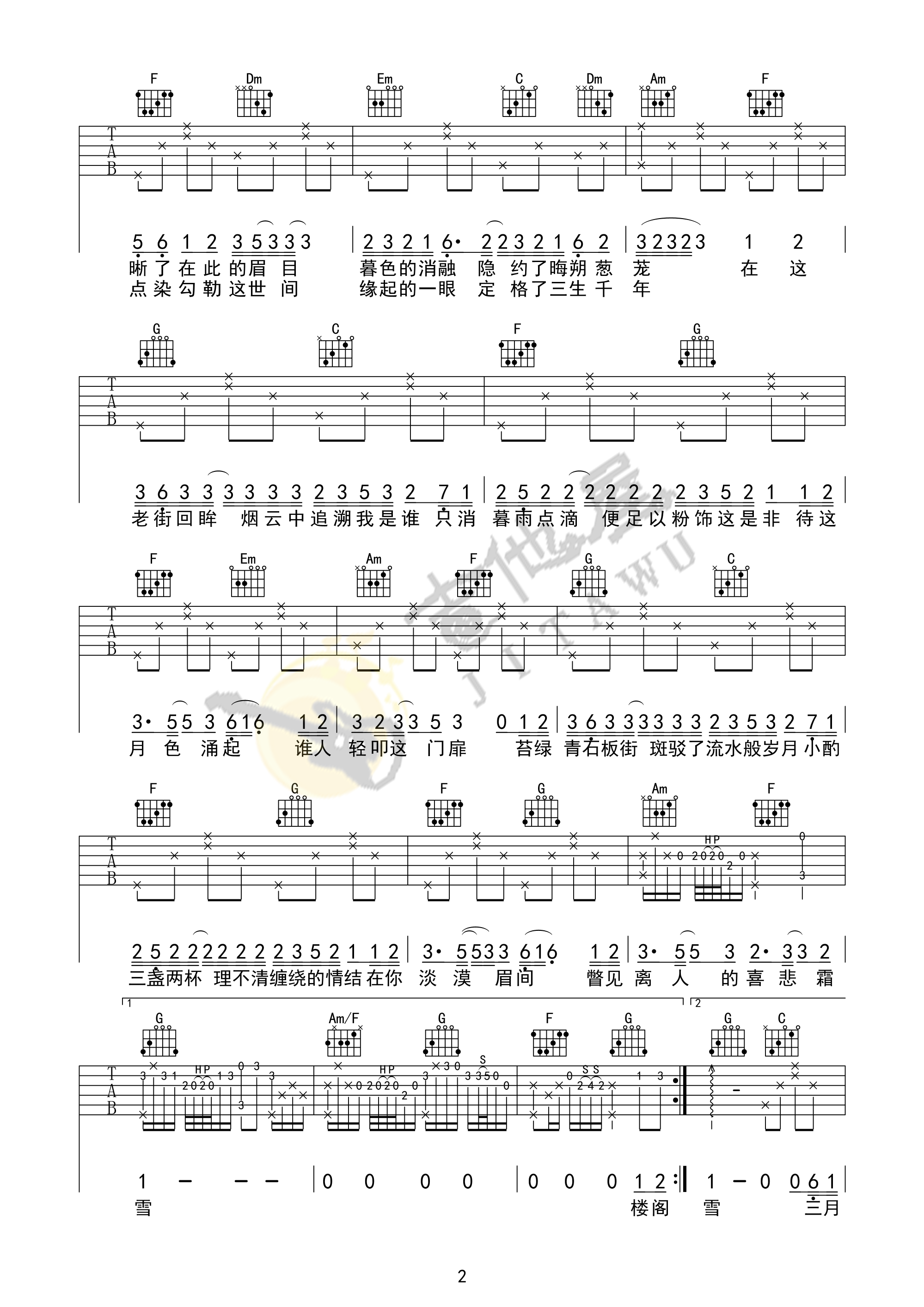 《双笙/封茗囧菌《霜雪千年吉他谱》(C调)》内容来自于互联网,不能保证内容的准确性与完整性,仅供学习交流欣赏,请勿用于其它用途,内容版权归原作者及来源网站所有,如有侵犯到您的权益请来信告知,我们将及时删除。