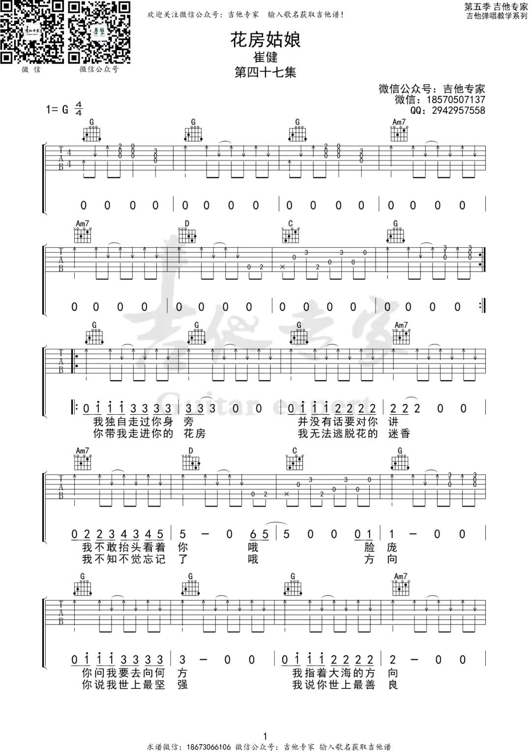 《崔健《花房姑娘吉他谱》(G调)》内容来自于互联网,不能保证内容的准确性与完整性,仅供学习交流欣赏,请勿用于其它用途,内容版权归原作者及来源网站所有,如有侵犯到您的权益请来信告知,我们将及时删除。