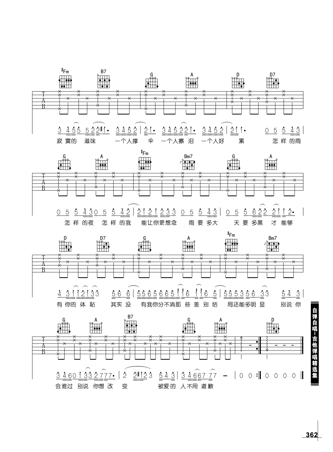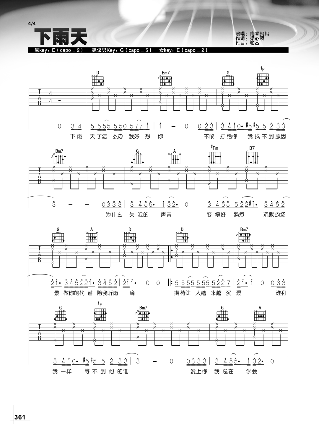 《南拳妈妈《下雨天吉他谱》(C调)》内容来自于互联网,不能保证内容的准确性与完整性,仅供学习交流欣赏,请勿用于其它用途,内容版权归原作者及来源网站所有,如有侵犯到您的权益请来信告知,我们将及时删除。