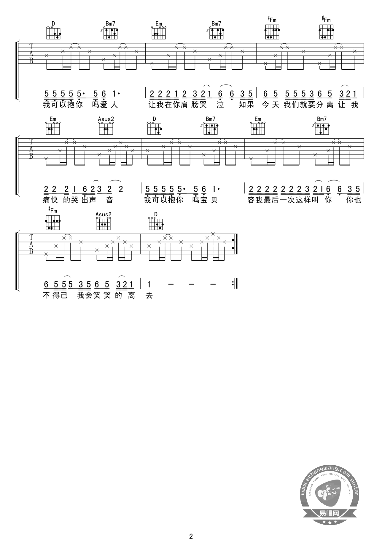 《张惠妹《我可以抱你吗吉他谱》(C调)》内容来自于互联网,不能保证内容的准确性与完整性,仅供学习交流欣赏,请勿用于其它用途,内容版权归原作者及来源网站所有,如有侵犯到您的权益请来信告知,我们将及时删除。