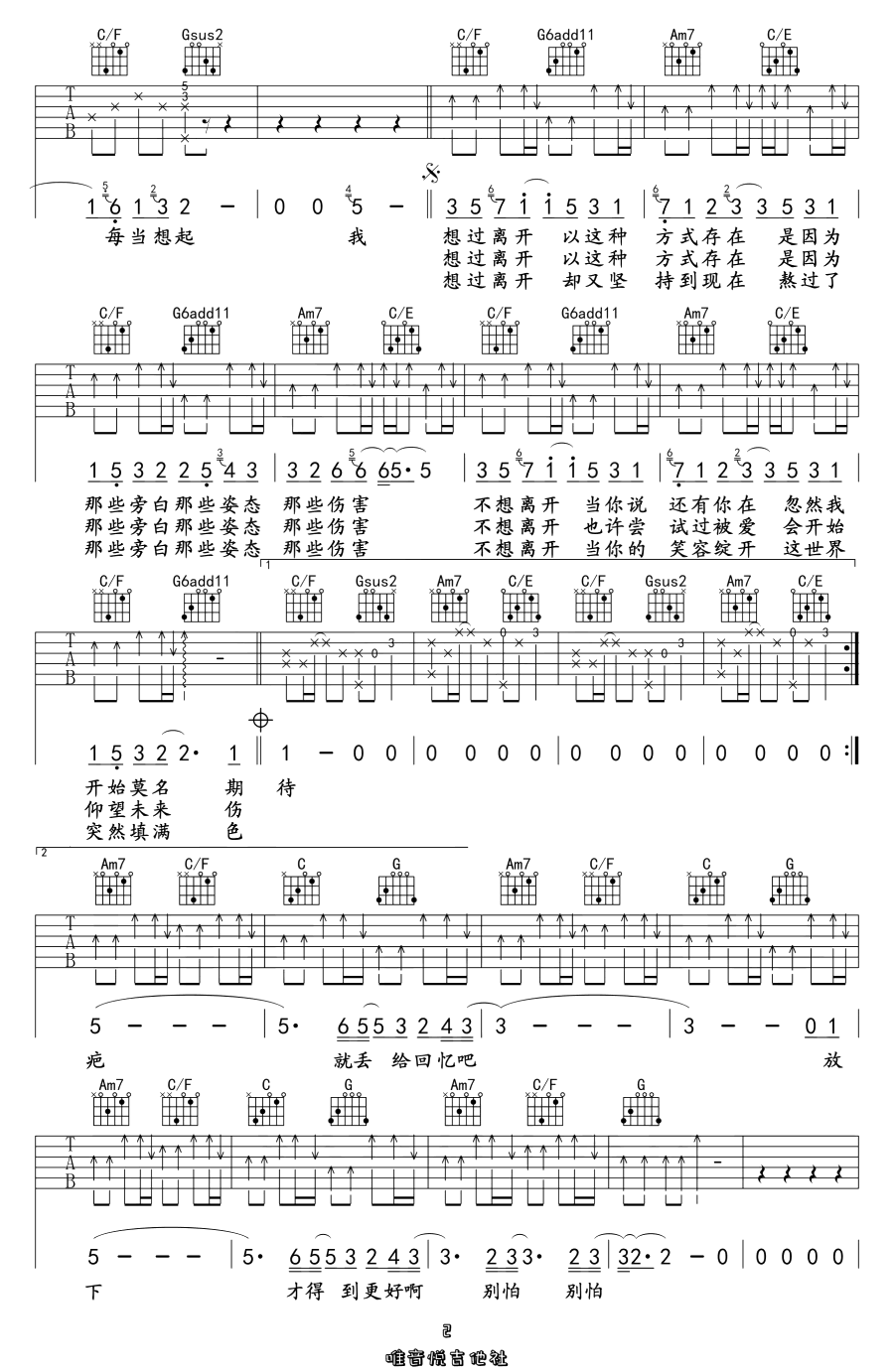 《听见了吗》由卢广仲演唱,以C调编曲,情感真挚动人。歌曲表达了对离别的不舍与内心的恳求,旋律中传递出“请不要说话,别对我说再见”的深情呼唤。弹奏时需注意控制速度在60拍/分钟,采用4/4拍节奏,保持舒缓流畅。此版本音调较高,适合女声演绎;男声演唱可使用变调夹夹