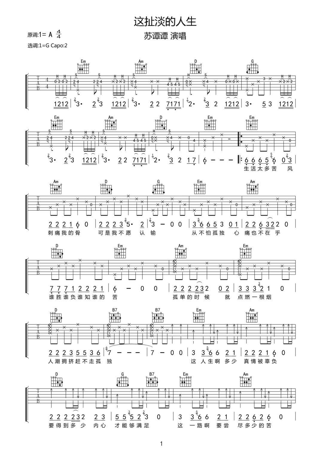 《苏谭谭《这扯淡的人生吉他谱》(C调)》内容来自于互联网,不能保证内容的准确性与完整性,仅供学习交流欣赏,请勿用于其它用途,内容版权归原作者及来源网站所有,如有侵犯到您的权益请来信告知,我们将及时删除。