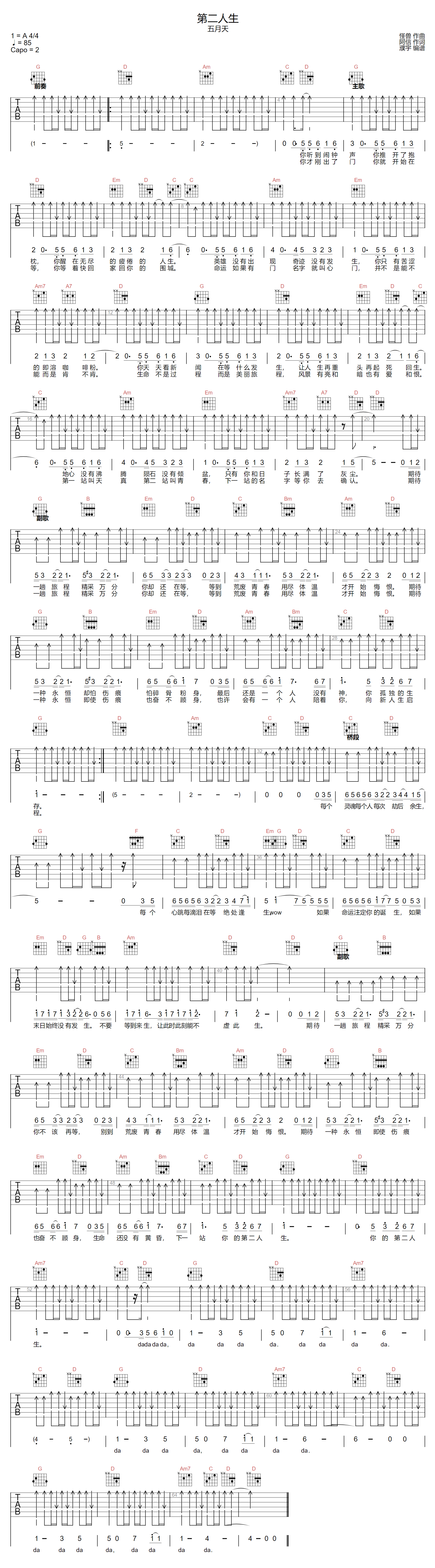 《五月天《第二人生吉他谱》(G调)》内容来自于互联网,不能保证内容的准确性与完整性,仅供学习交流欣赏,请勿用于其它用途,内容版权归原作者及来源网站所有,如有侵犯到您的权益请来信告知,我们将及时删除。
