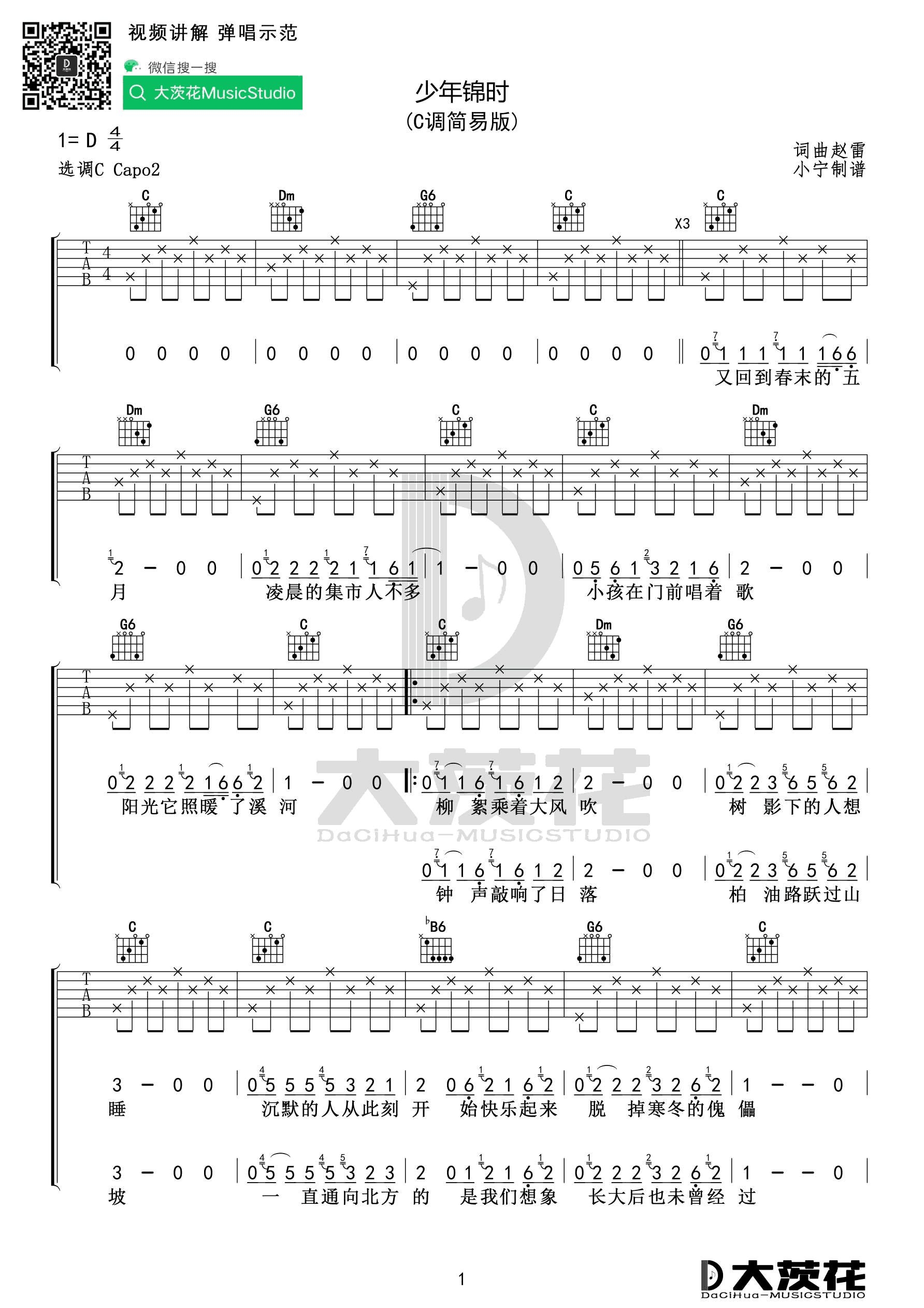 《赵雷《少年锦时吉他谱》(G调)》内容来自于互联网,不能保证内容的准确性与完整性,仅供学习交流欣赏,请勿用于其它用途,内容版权归原作者及来源网站所有,如有侵犯到您的权益请来信告知,我们将及时删除。