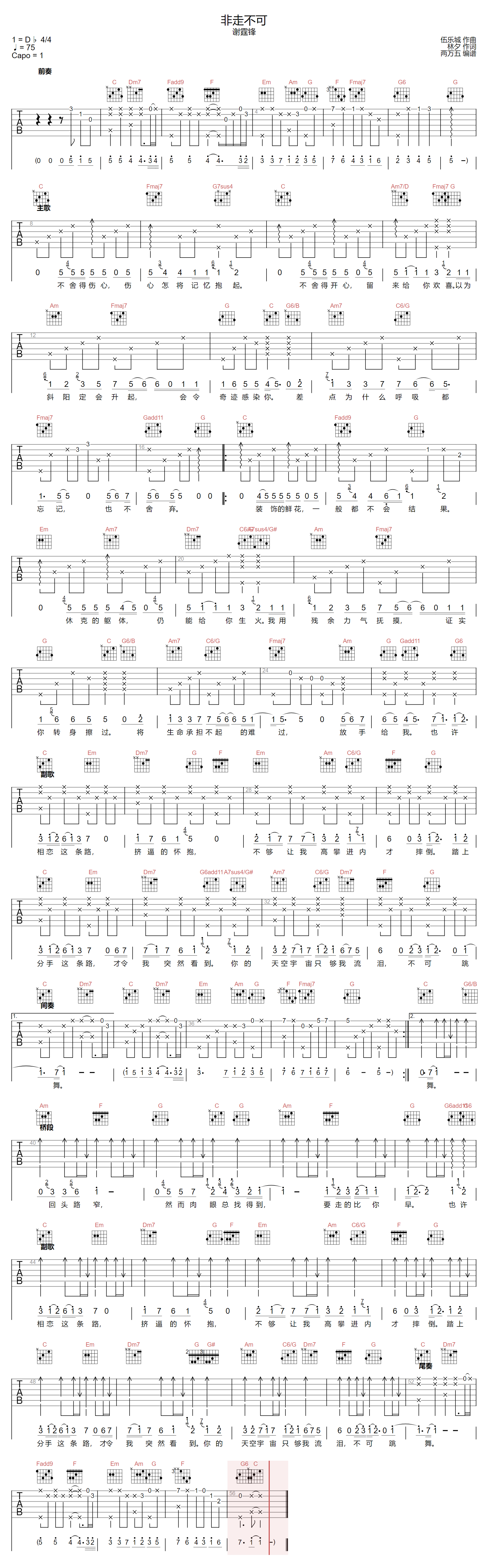 《谢霆锋《非走不可吉他谱》(C调)》内容来自于互联网,不能保证内容的准确性与完整性,仅供学习交流欣赏,请勿用于其它用途,内容版权归原作者及来源网站所有,如有侵犯到您的权益请来信告知,我们将及时删除。